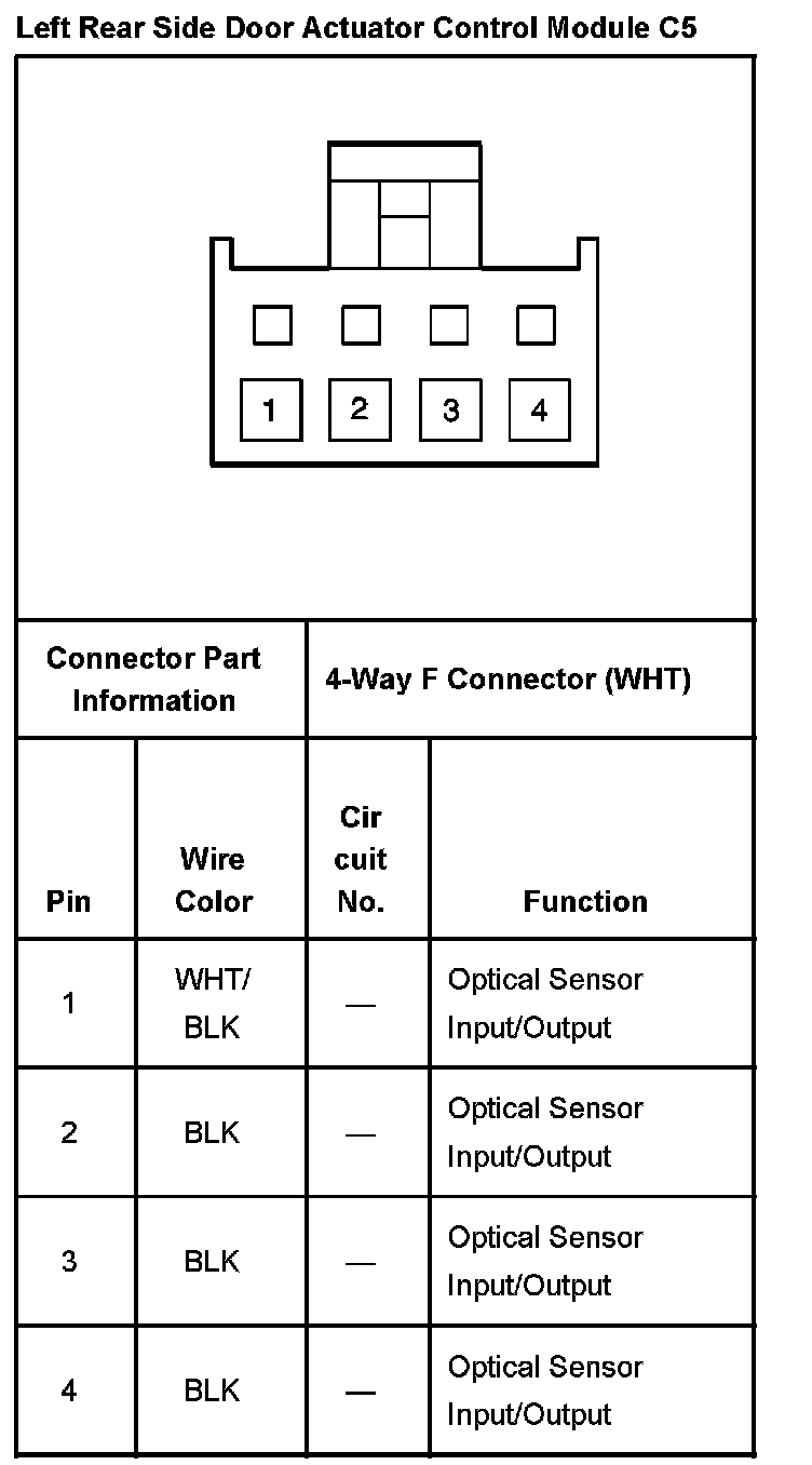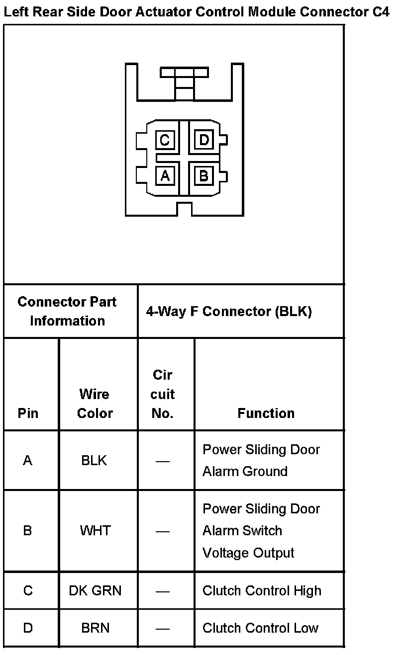 Left Rear Side Door Actuator Control Module Connector C4: