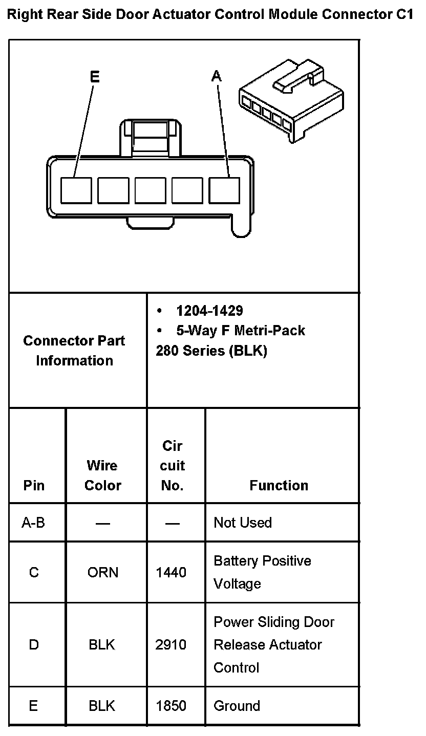 Right Rear Side Door Actuator Control Module Connector C1: