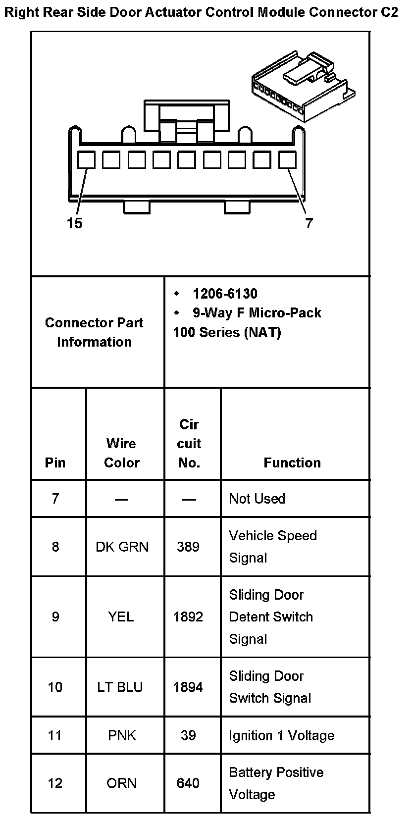 Right Rear Side Door Actuator Control Module Connector C2 Part 2: