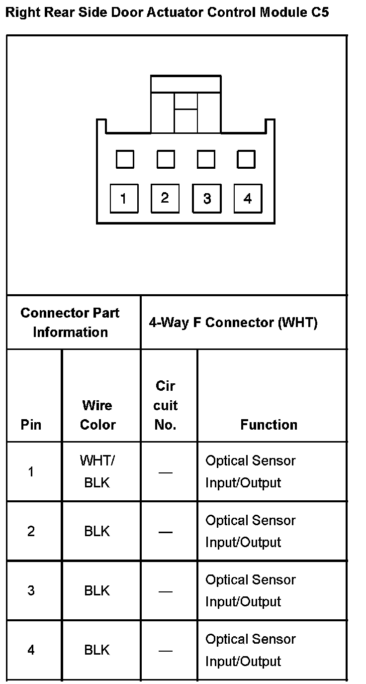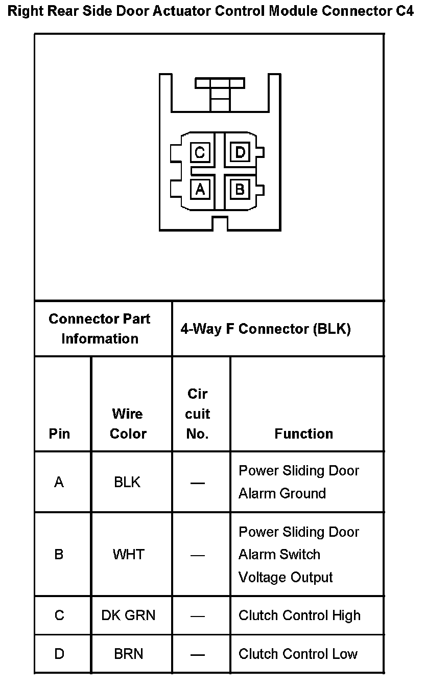 Right Rear Side Door Actuator Control Module Connector C4: