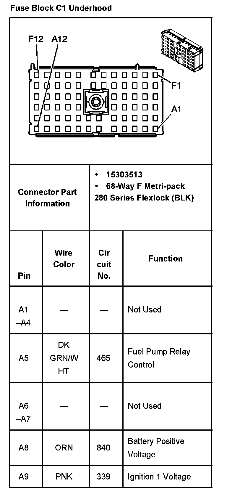 Fuse Block C1 Underhood Part 3:
