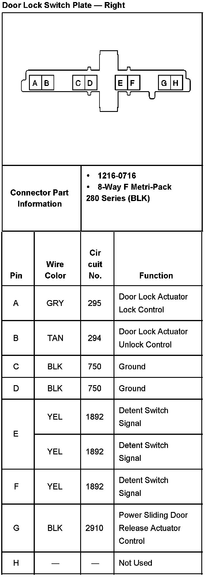 Door Lock Switch - Driver:
