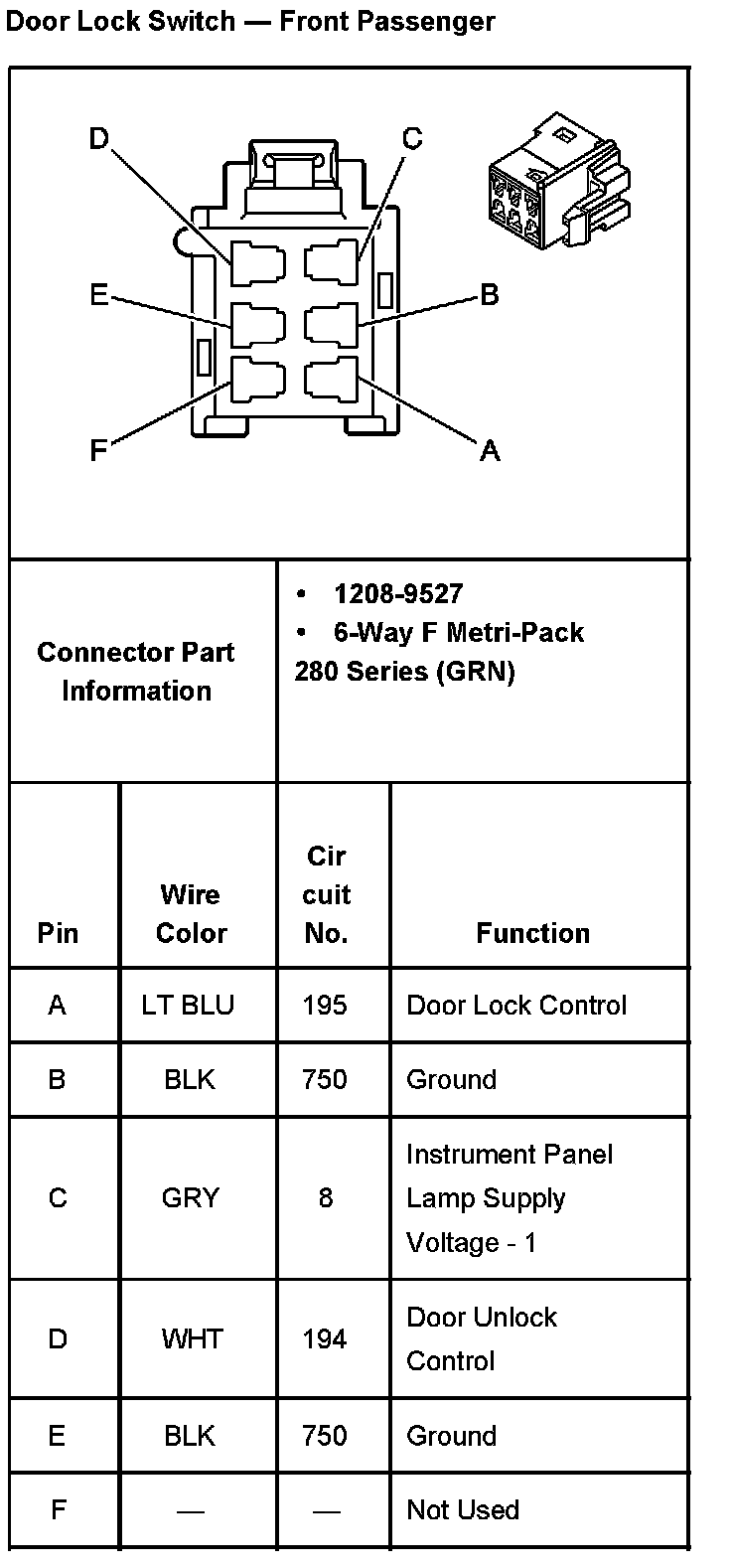 Door Lock Switch - Front Passenger: