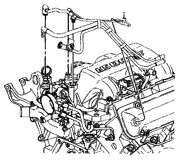 6. Disconnect the engine left side spark plug wire harness attachment clip. Disconnect the throttle body heater hoses.