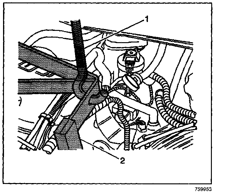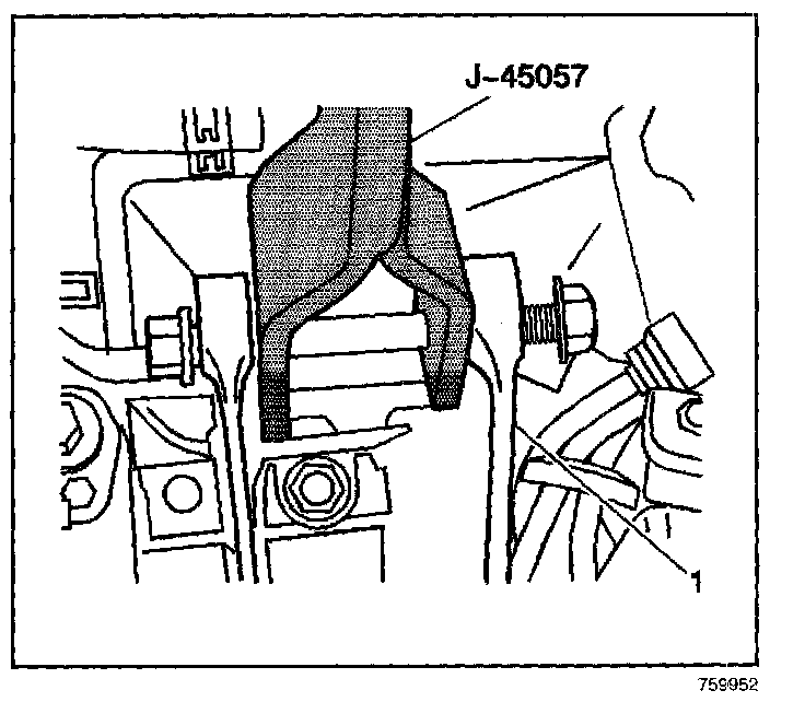 2. Install the J 45057 to the right engine mount strut bracket (1).