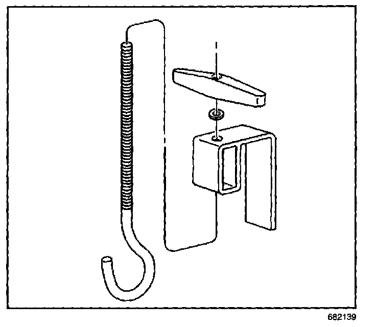 12. Install the right side lift hook assembly to the right side hole in the J 45057(2).