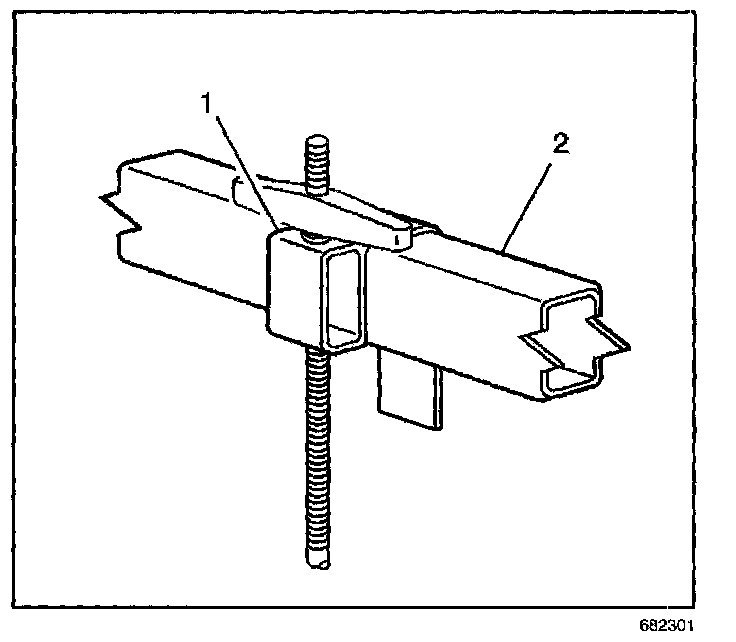 11. Install the two lift hook assemblies (1) to the J 450572 (2).
