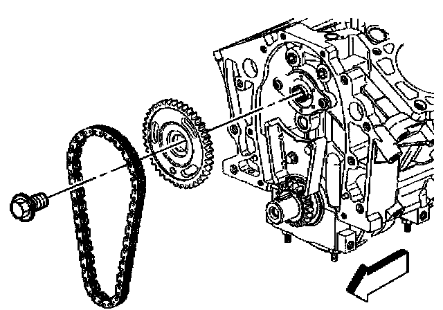 5. Remove the camshaft sprocket and timing chain.