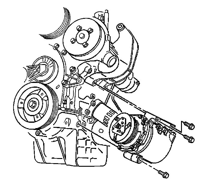 16. Remove compressor mounting bolts.