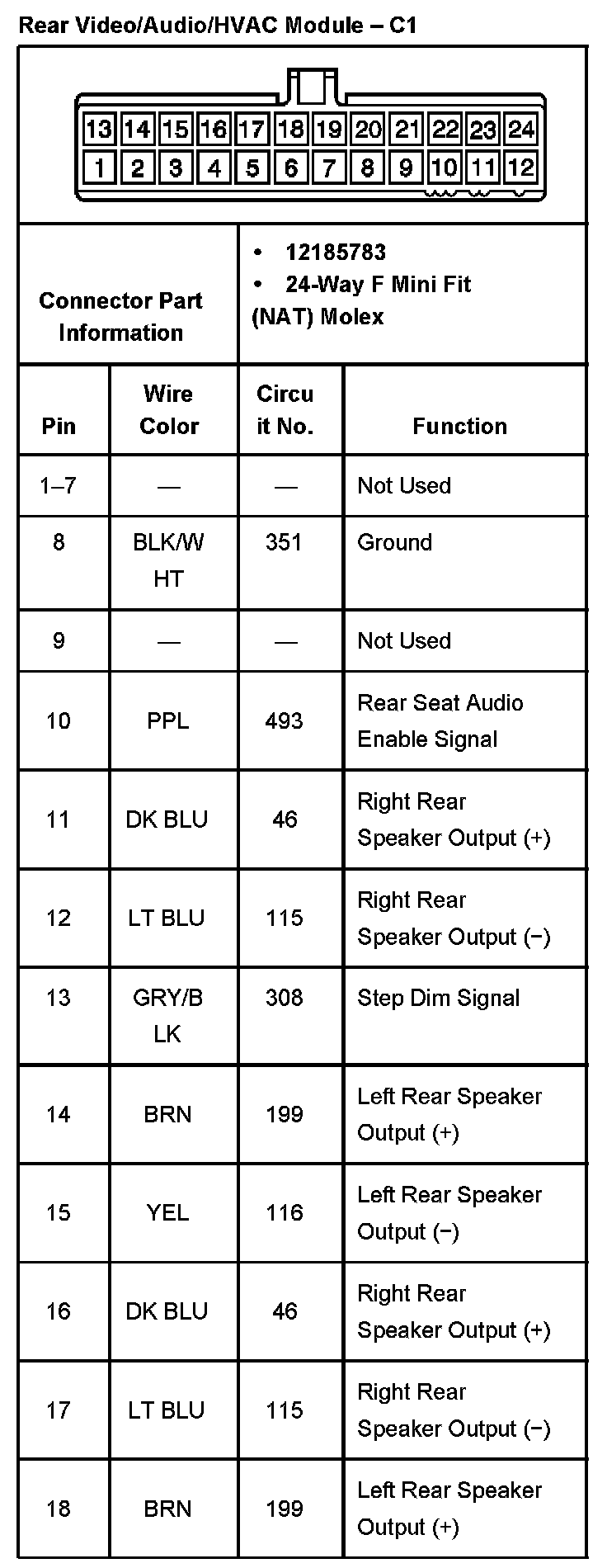 Rear Video/Audio/HVAC Module - C1 Part 2: