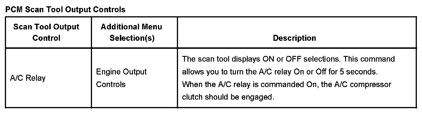 PCM Scan Tool Output Controls: