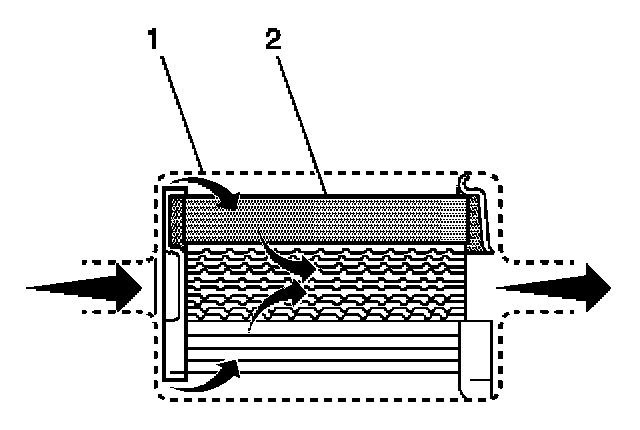 The fuel filter is located on the fuel feed pipe, between the fuel pump and the fuel injectors. The paper filter element (2) traps particles in the fuel that may damage the fuel injection system. The filter housing (1) is made to withstand maximum fuel system pressure, exposure to fuel additives, and changes in temperature. There is no service interval for fuel filter replacement. Replace a restricted fuel filter.
