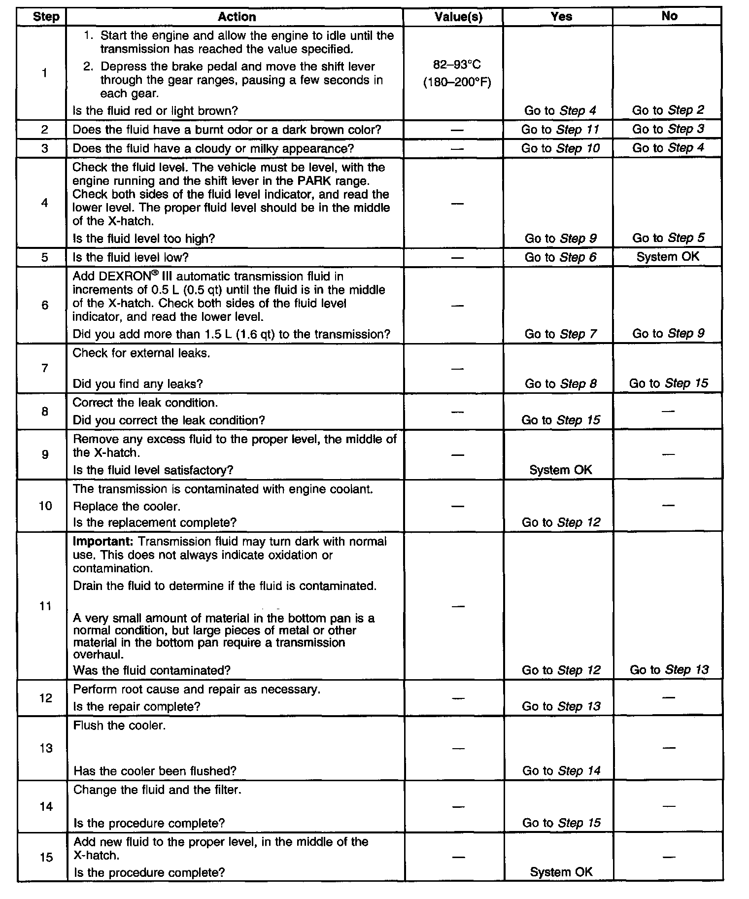 Transmission Fluid Checking Procedure Step 1 - 15: