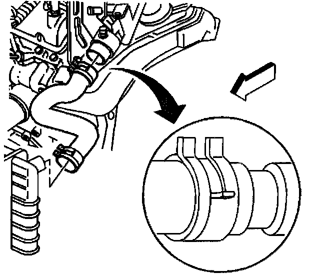 Important: Use the J 38185 to gently release tension on the hose clamp until the hose clamp lock feature engages allowing removal of the hose.