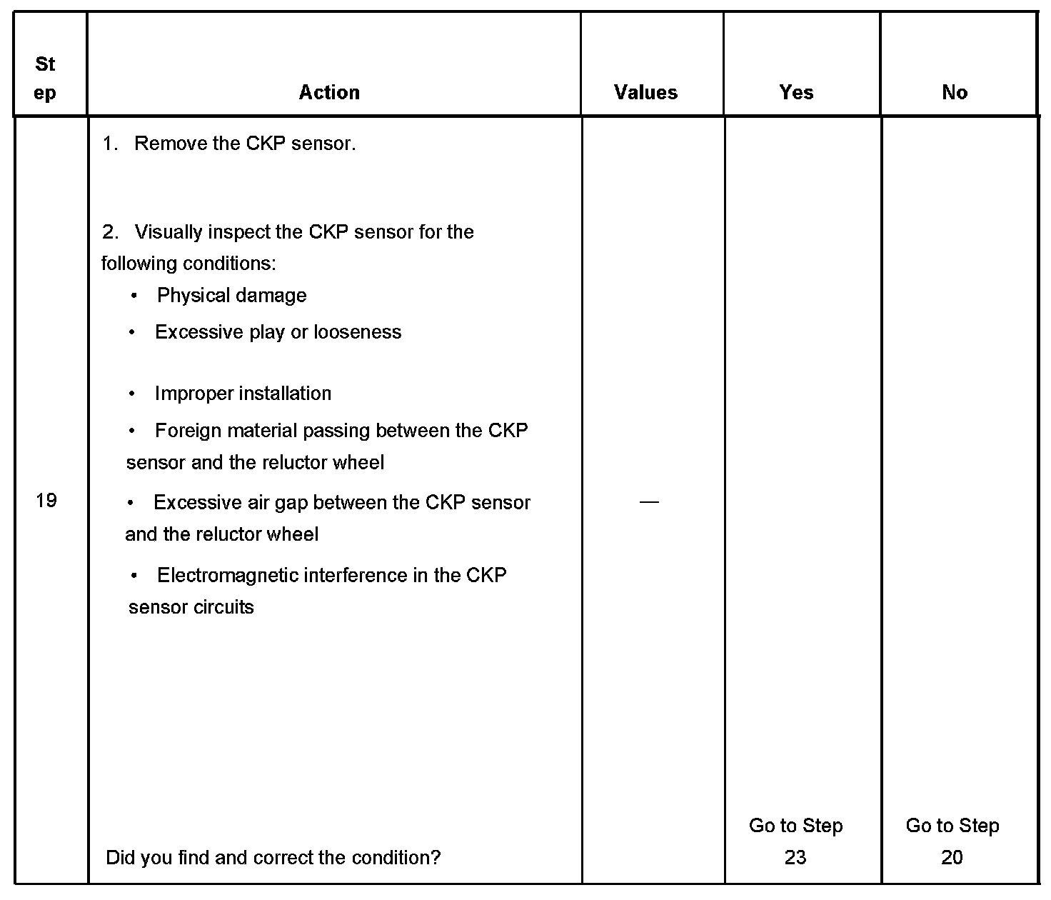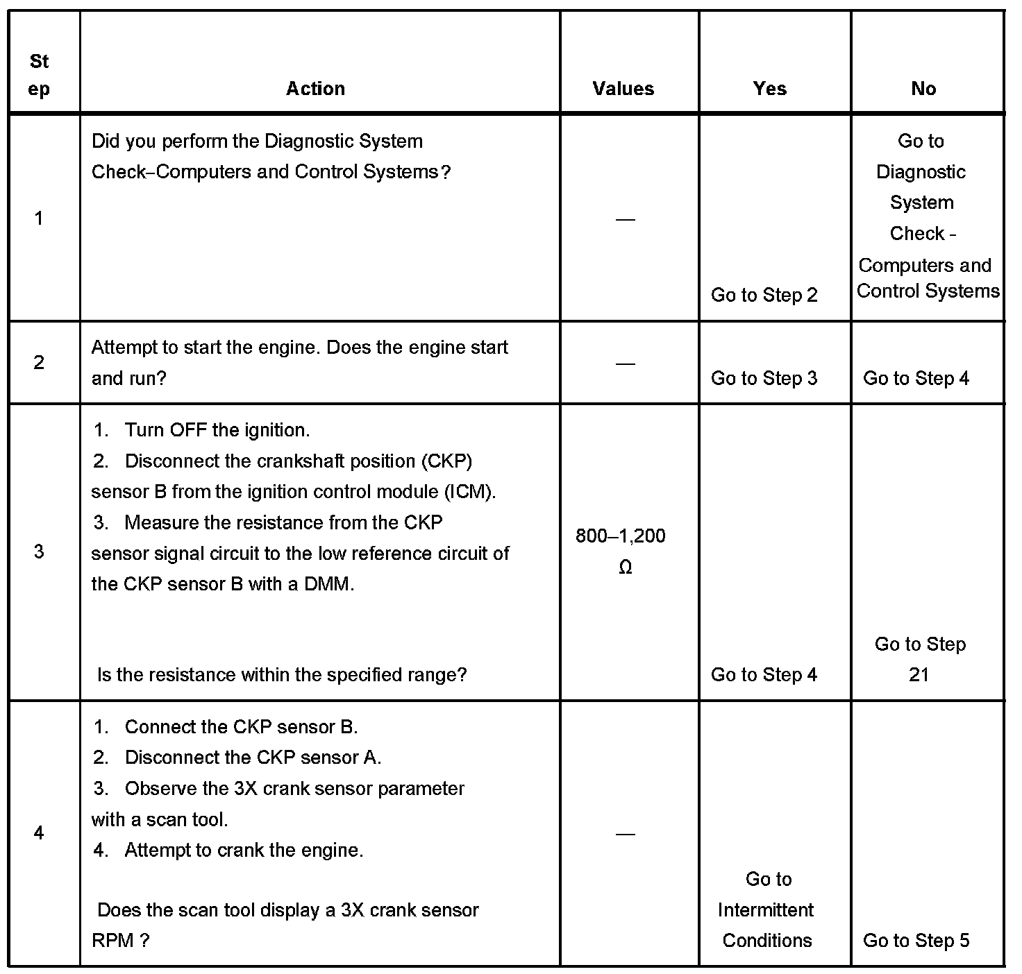 The CKP sensor system diagnosis is used to diagnose a fault with CKP sensor B or any of the CKP sensor B circuits.