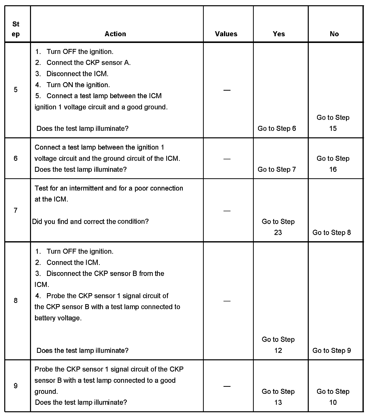 - The CKP sensor signal circuit