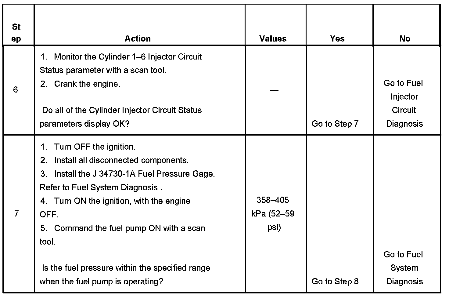 6. If all the Cylinder Injector Circuit Status parameters display Fault, this indicates a condition with the injector supply voltage circuit.