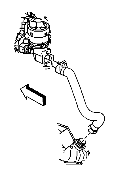 2. Remove the bolt retaining the pipe assembly from the exhaust gas recirculation (EGR) valve and carefully pull the pipe assembly back.