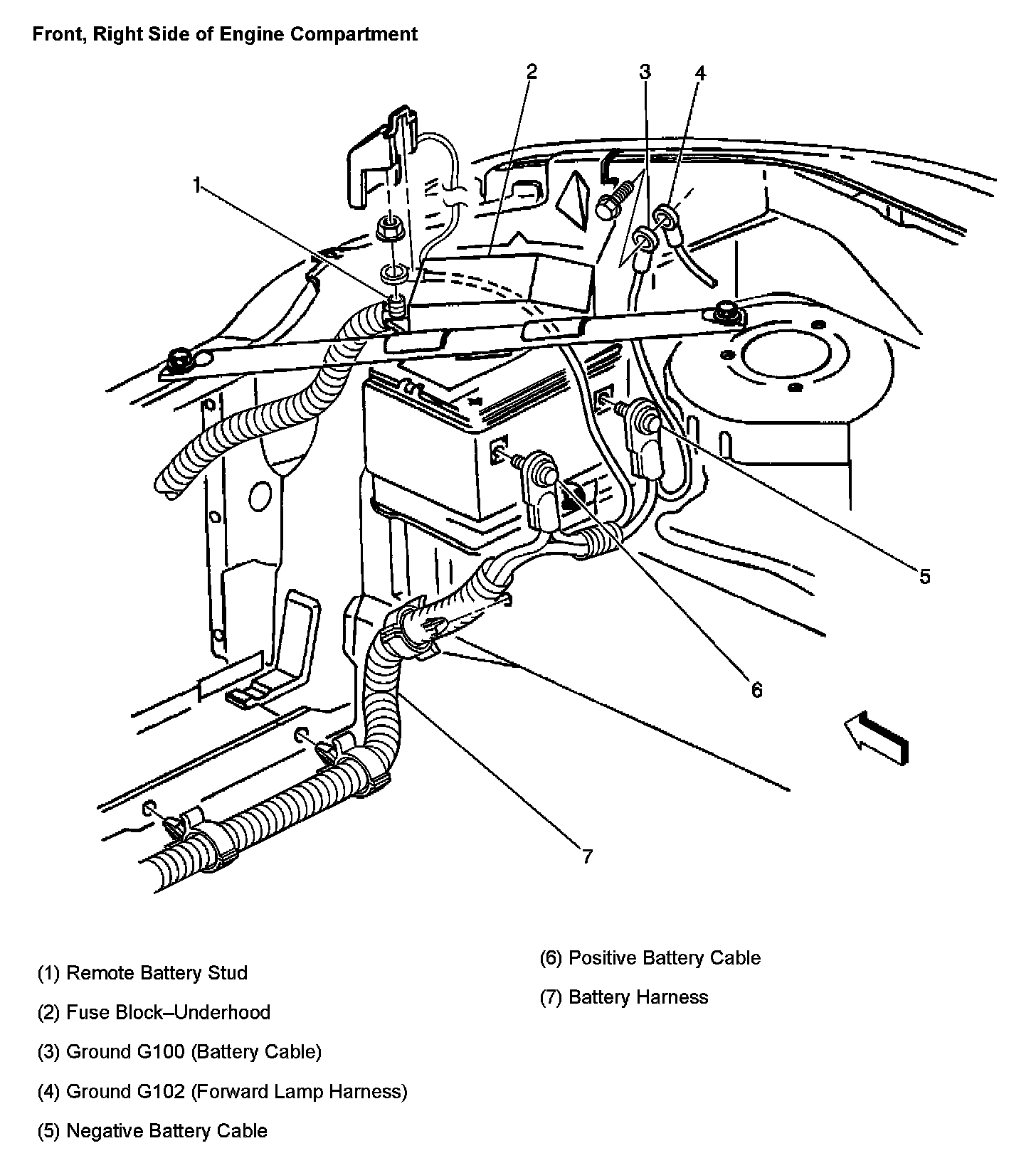 Front, Right Side Of Engine Compartment:
