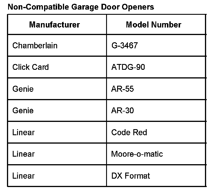 NON-COMPATIBLE GARAGE DOOR OPENERS