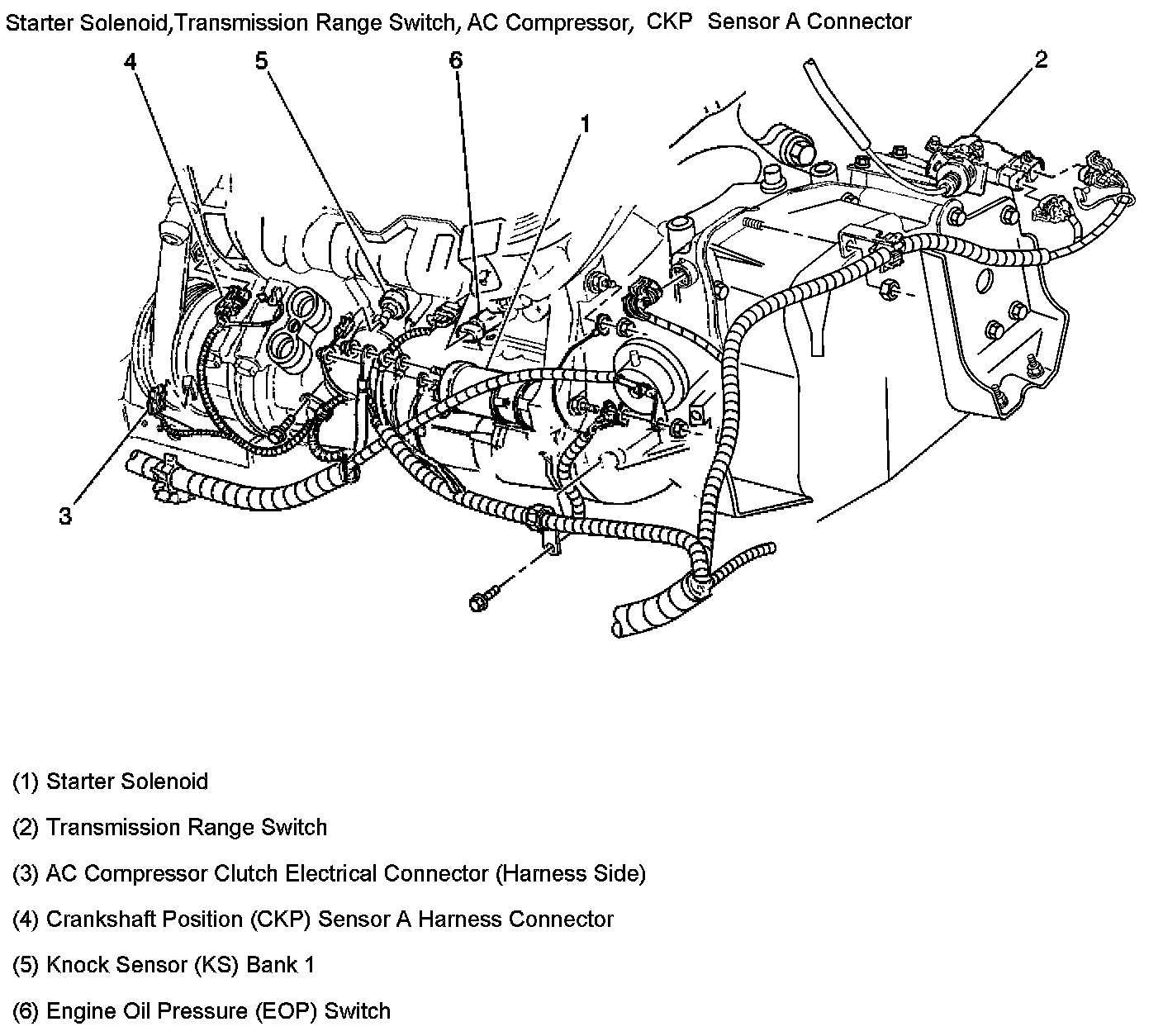 Starter Solenoid, Transmission Range Switch, A/C Compressor And CKP A Connectors: