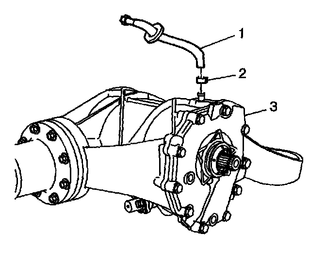 2. Remove the clamp (2) and vent hose assembly (1 ) from the differential (3).