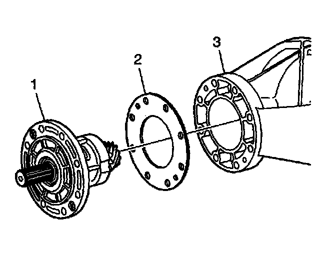 10. Remove the pinion and housing assembly (1) and shim (2) from the differential (3).