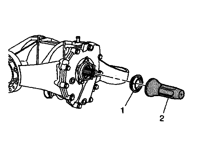 12. Remove the left axle shaft oil seal (1) from the differential.