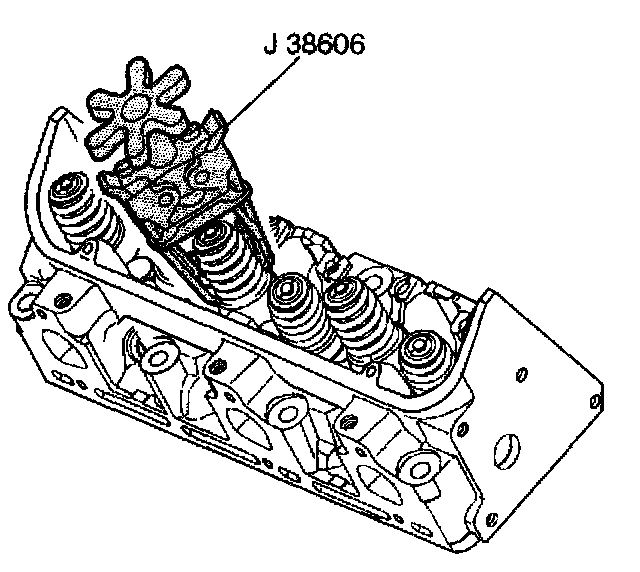6. Remove the J 38606 in order to release the valve spring.