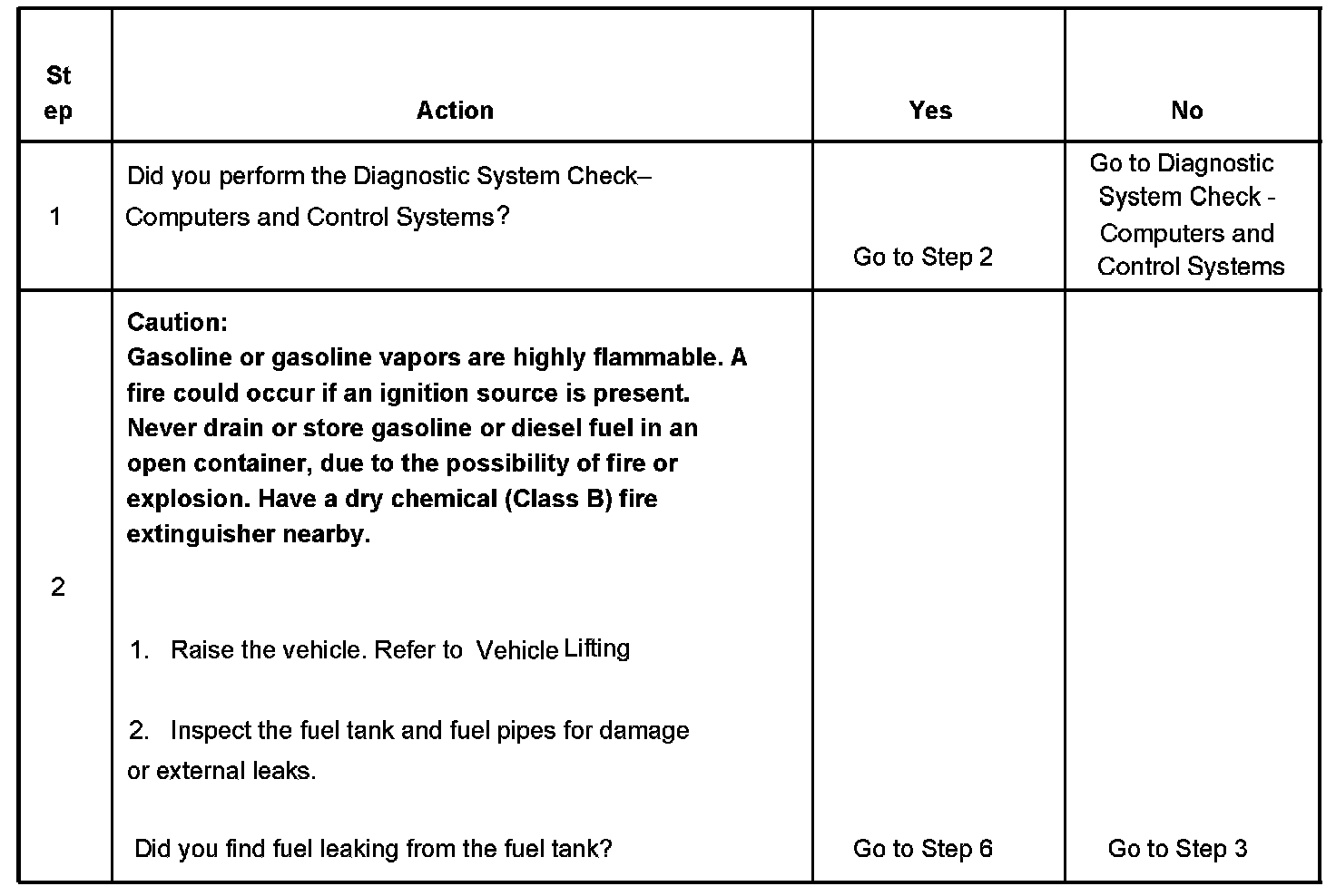 The numbers below refer to the step numbers on the diagnostic table.