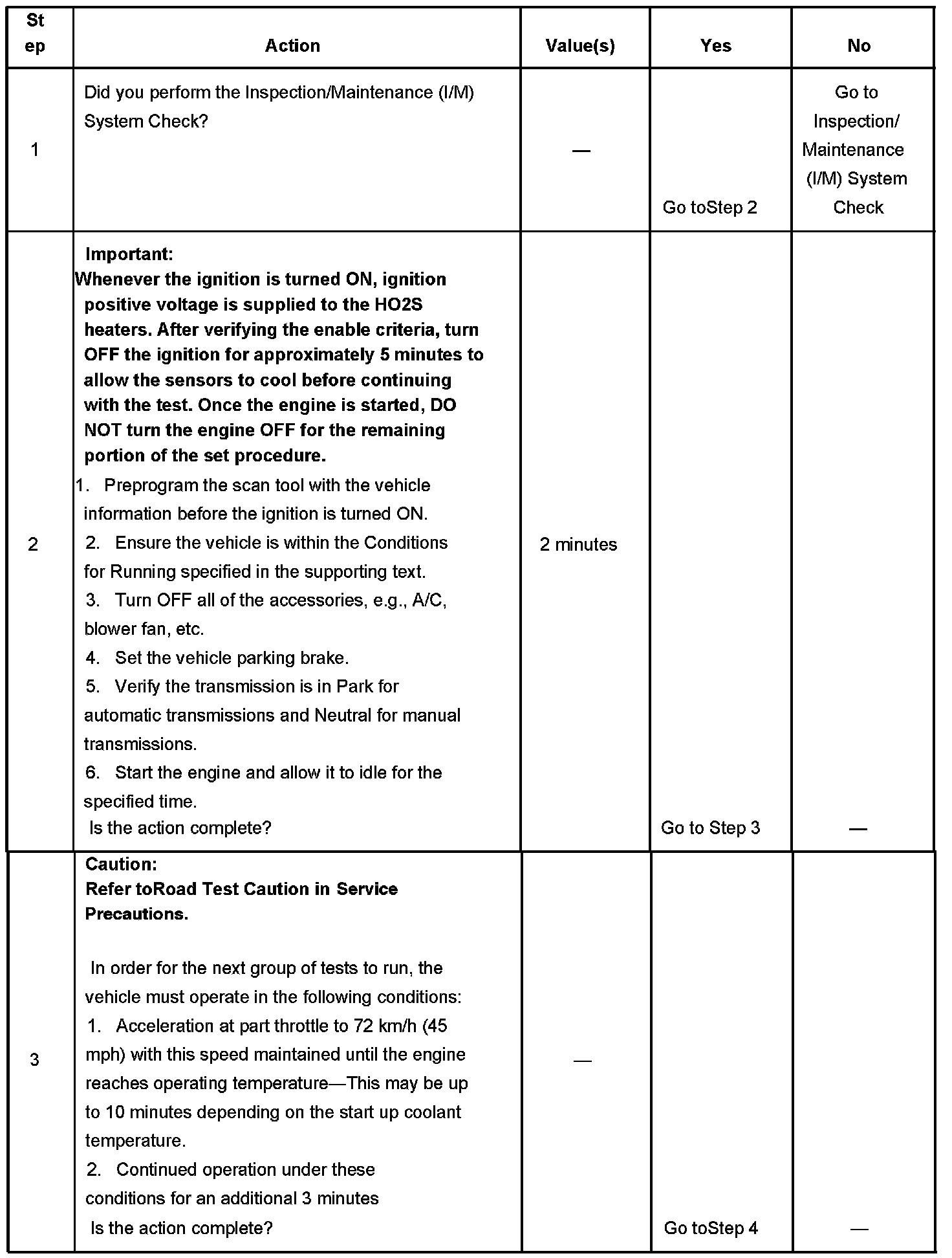 Rough road conditions may prevent some of the tests from running. Extreme high or low ambient temperatures may prevent tests such as HO2S Heater and EVAP System from initiating. If a step is interrupted before completion, perform the remaining portion of the set procedures. Any portion of the set procedure that requires the engine at operating temperature may be repeated. This allows most of the diagnostics to run and the remaining tests can be performed using the individual System Set Procedures.
