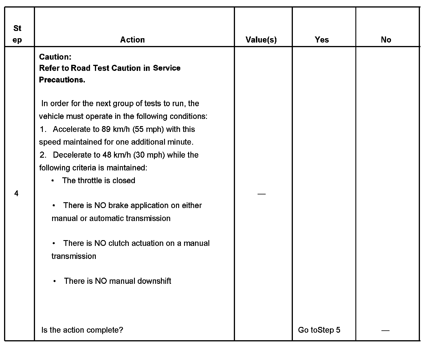 5. This step is to run the Catalyst Tests. This test runs during the idle period immediately following a cruise period that meets a minimum calibrated RPM and time period.