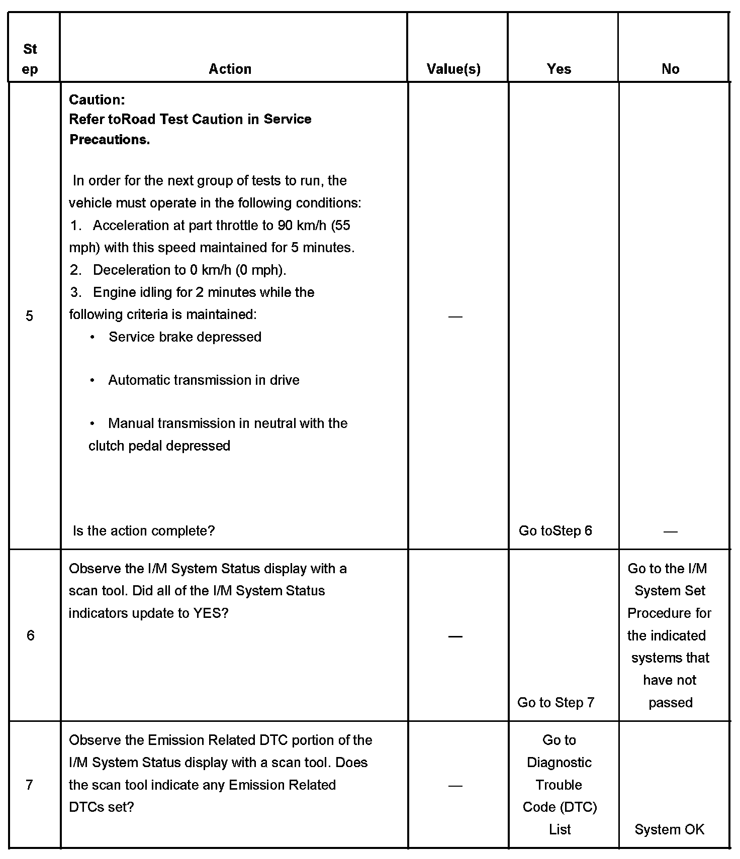 7. The I/M System Status only reports on whether or not a diagnostic has run, not what the outcome of the test was. If any emission related DTC sets after the tests are complete, the DTC will require diagnosis.