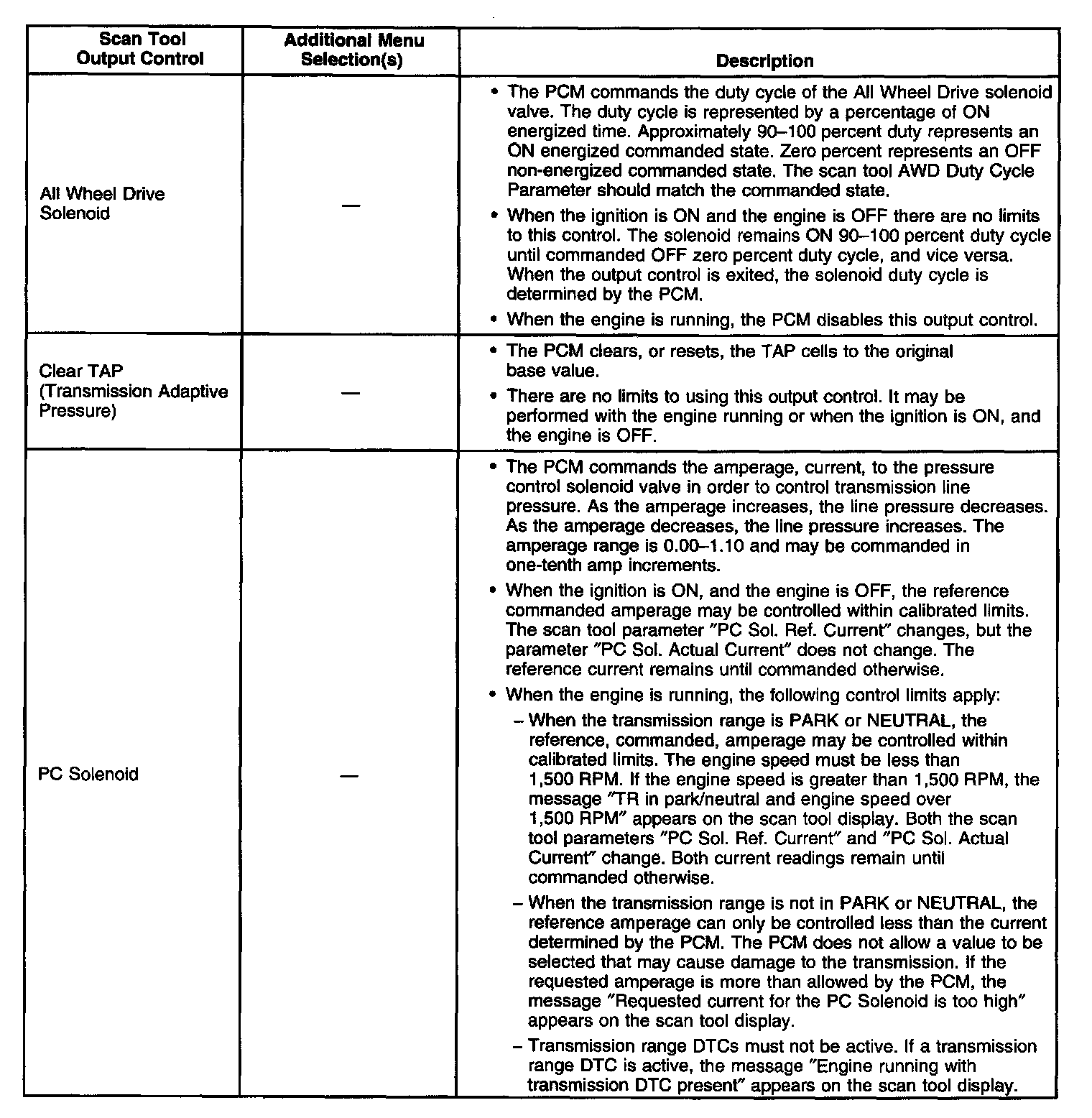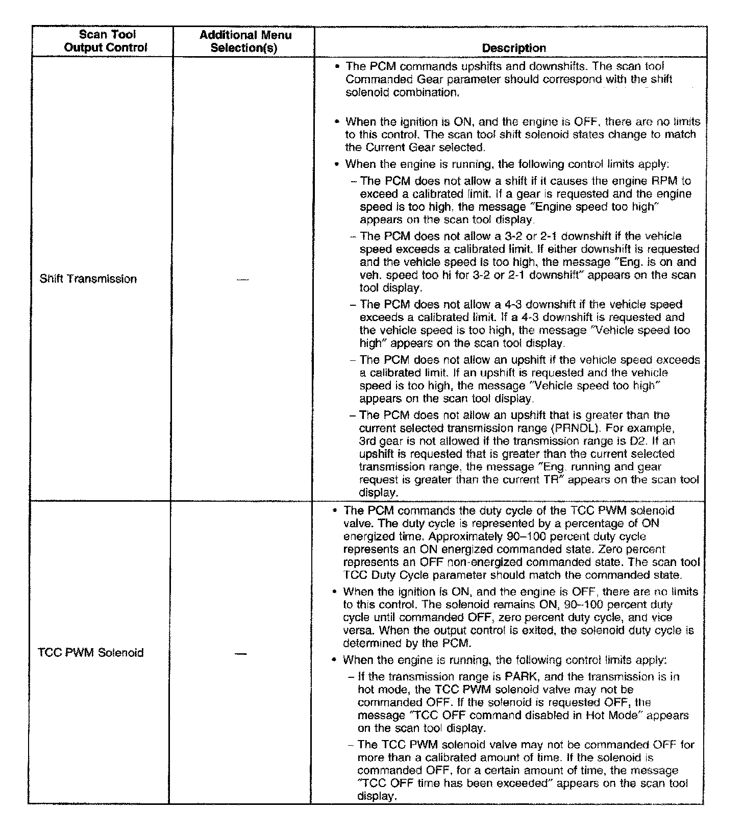 Scan Tool Output Controls