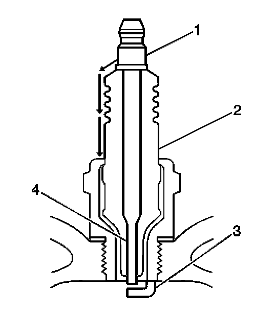 - Inspect for the correct spark plug torque. Refer to Ignition System Specifications. Insufficient torque can prevent correct spark plug operation. An over torqued spark plug, causes the insulator (2) to crack.