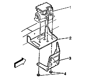 4. Secure the module (1) to the frame bracket (3) and fuel pipe shield (2) with the 2 nuts (4).