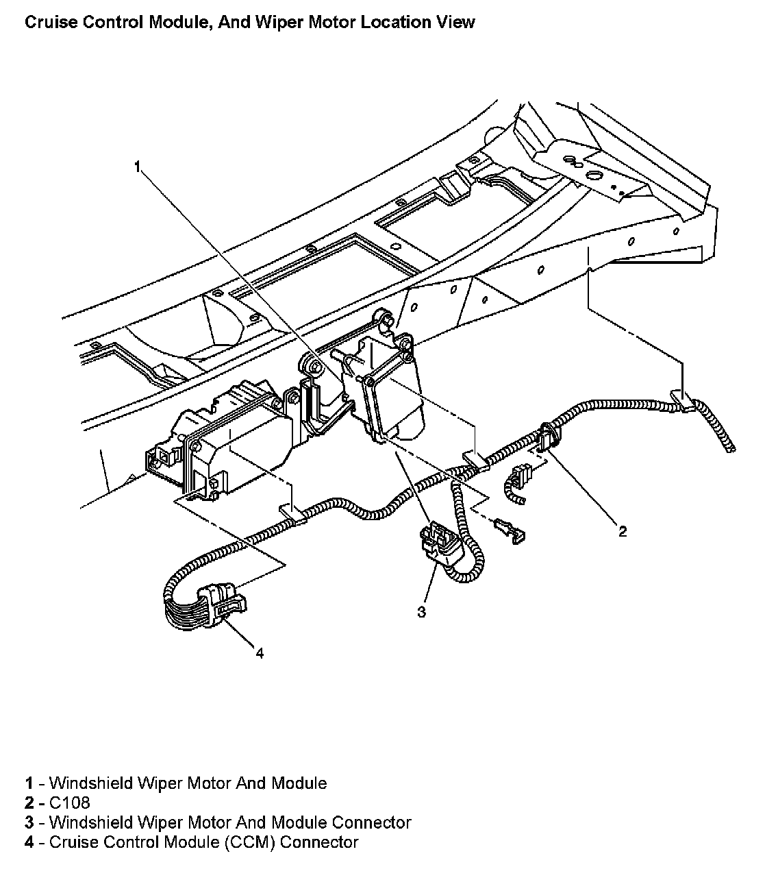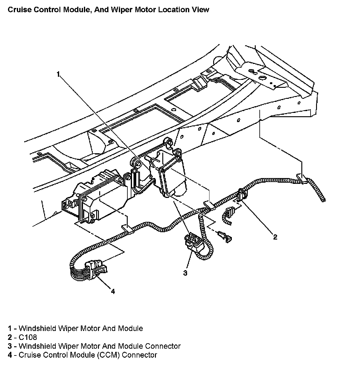 Cruise Control Module, and Wiper Motor Location View