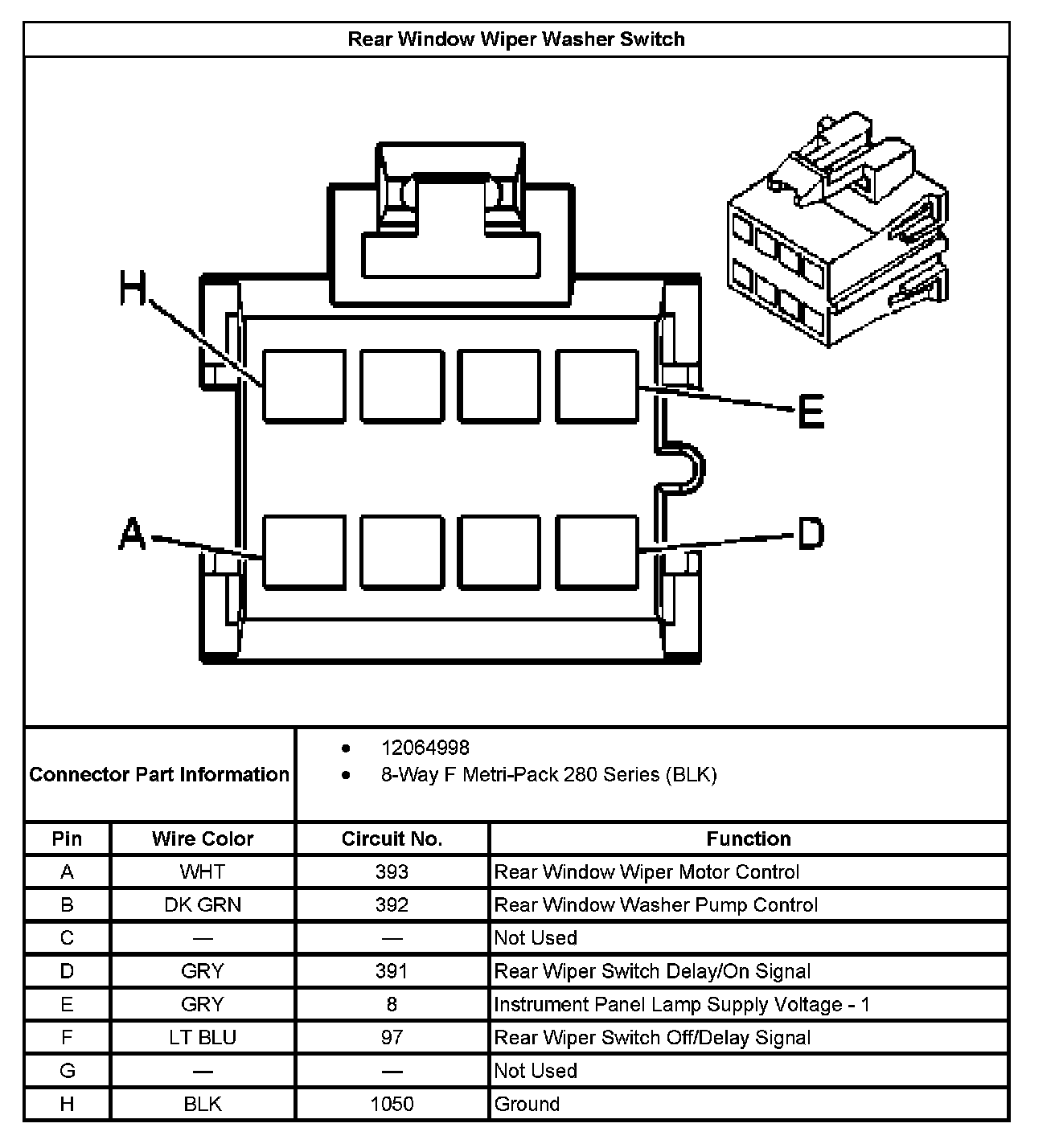 Rear Window Wiper Washer Switch: