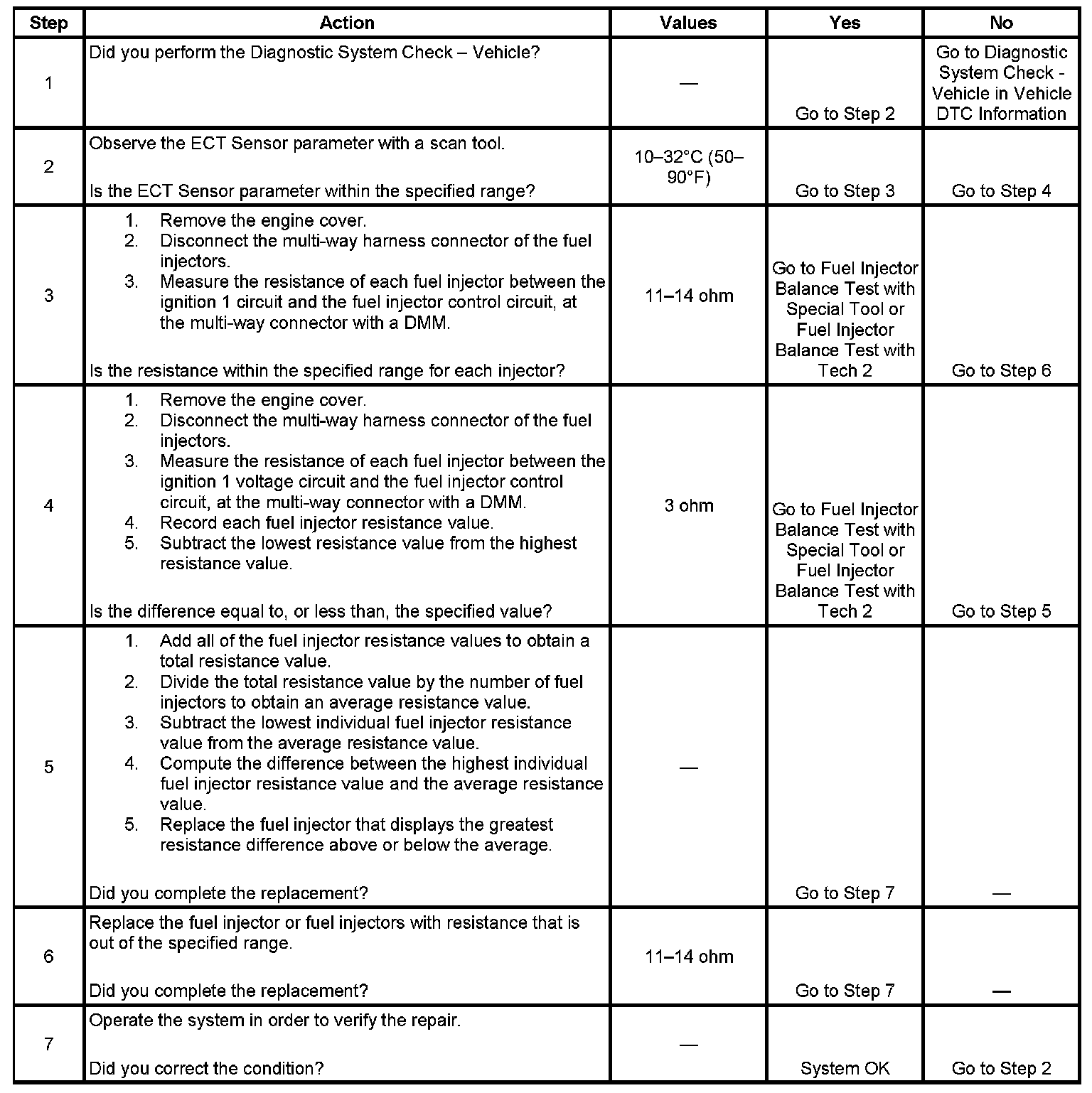 - Perform the fuel injector coil test within the conditions of the customer's concern. A fuel injector condition may only be apparent at a certain temperature, or under certain conditions.