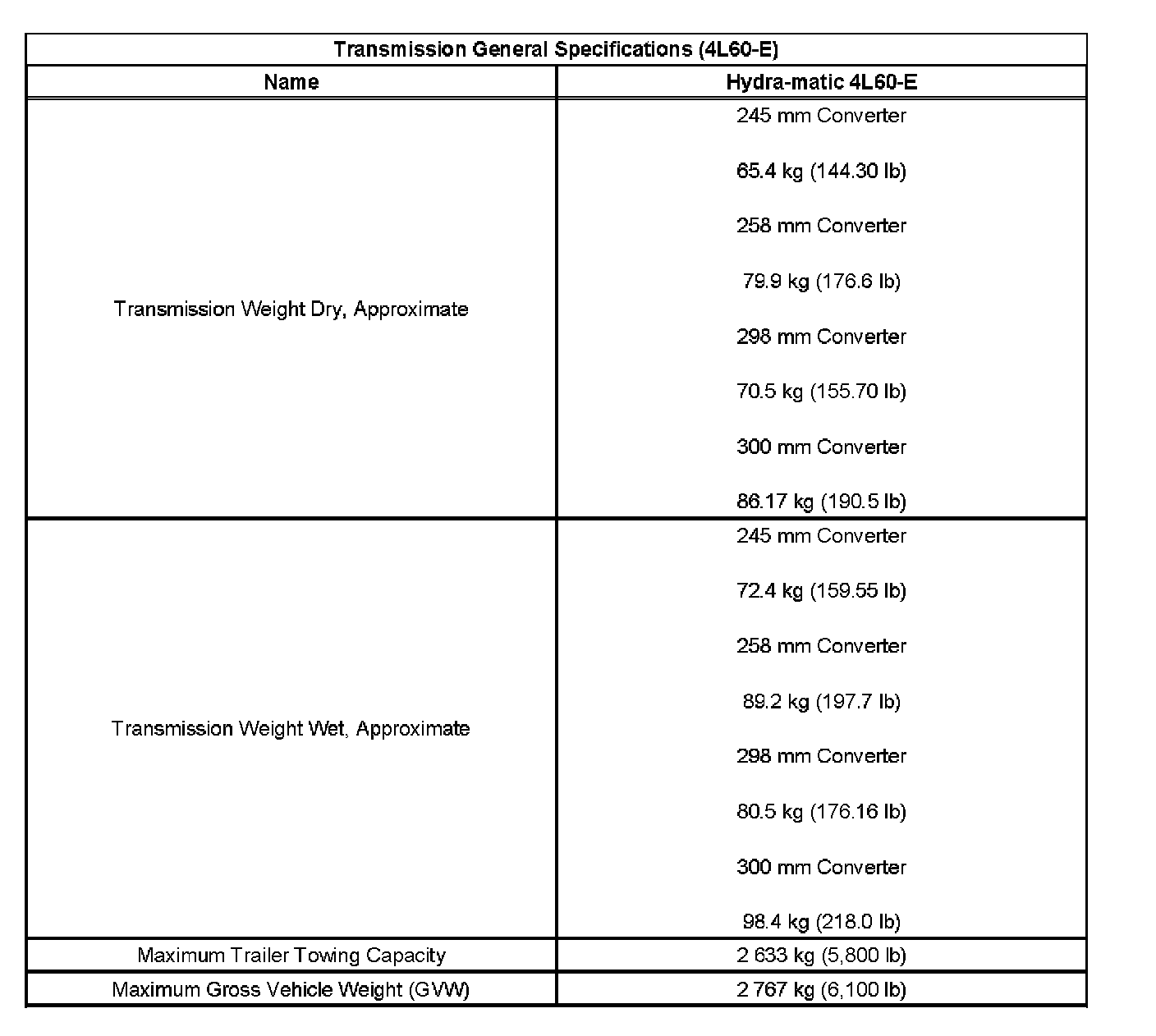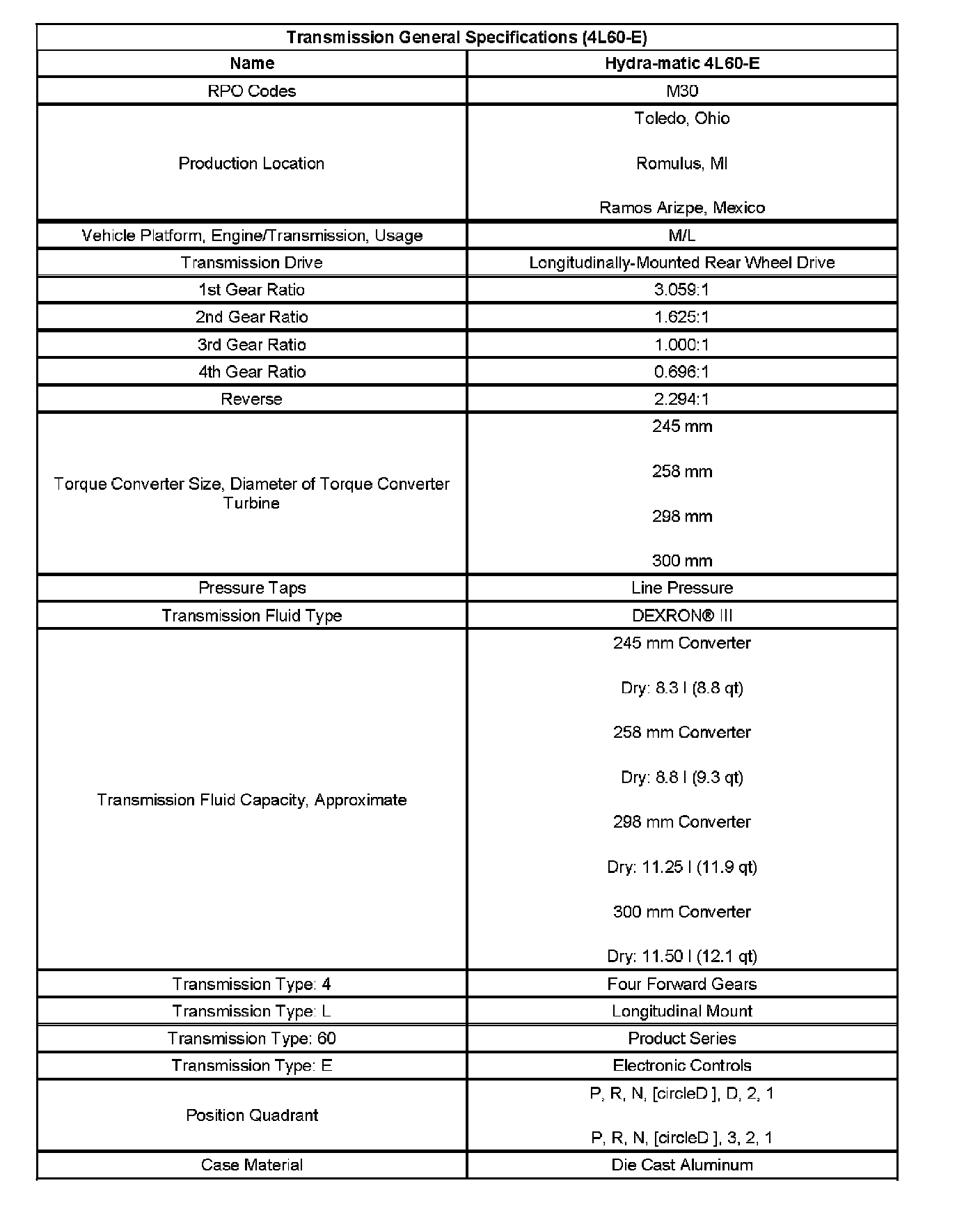 Transmission General Specifications