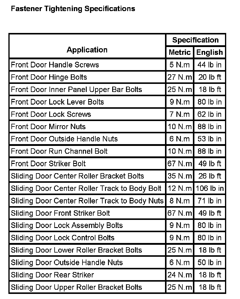 Fastener Tightening Specifications