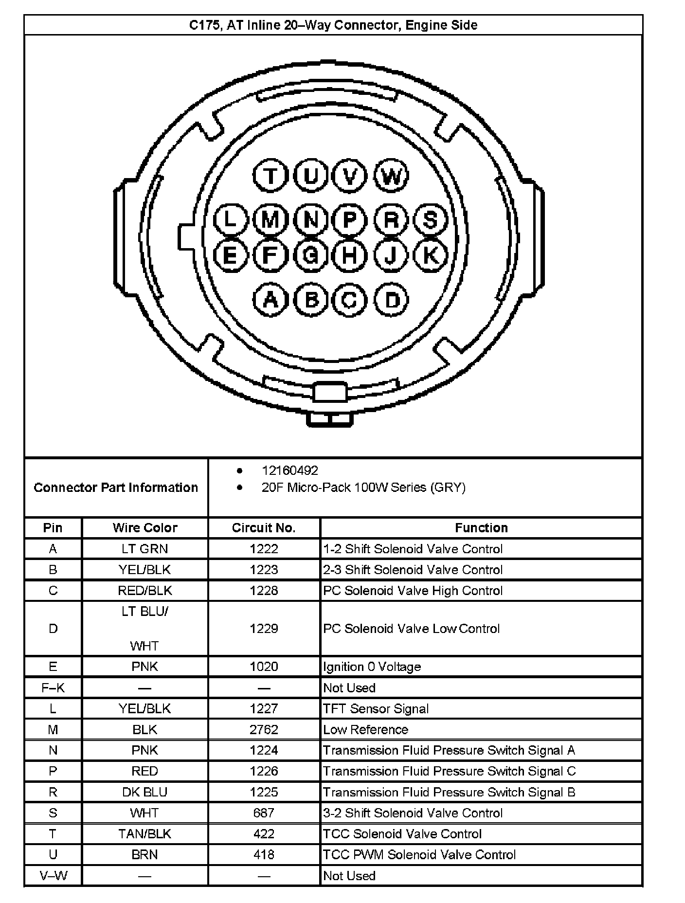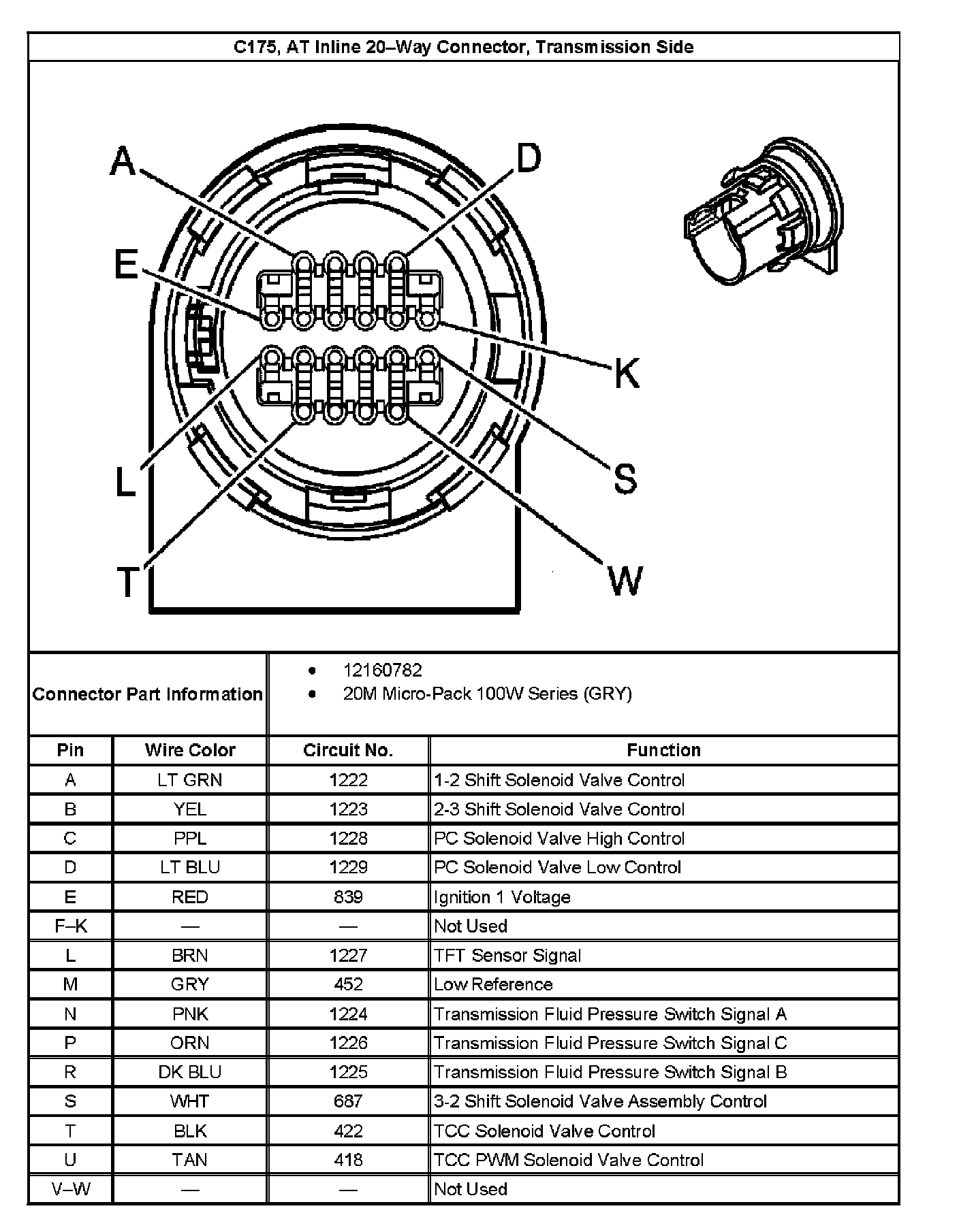 C175, AT Inline 20-Way Connector End View, Transmission Side: