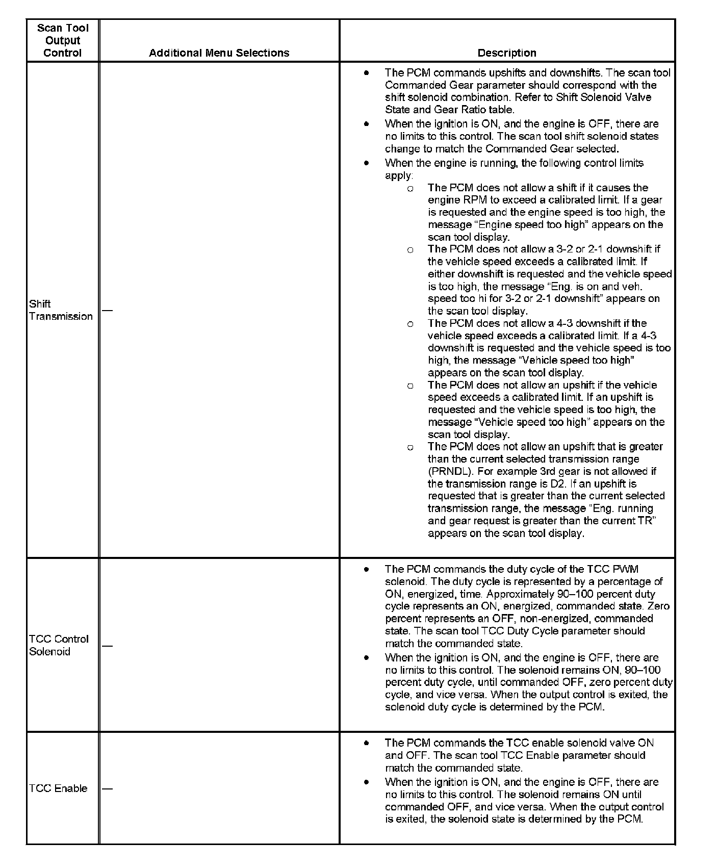 Scan Tool Output Controls