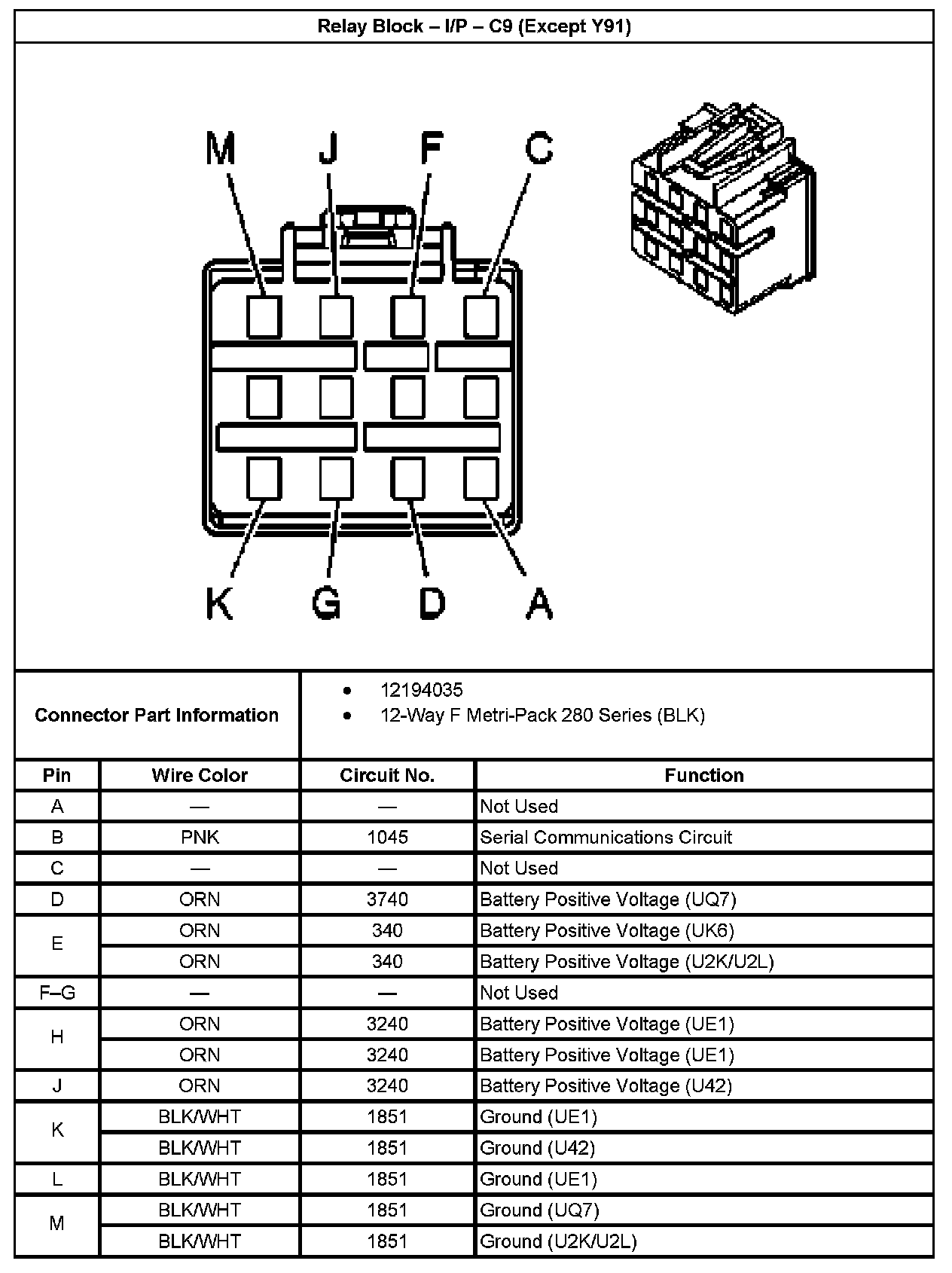 Relay Block - I/P - C9 (Without RPo Code Y91):