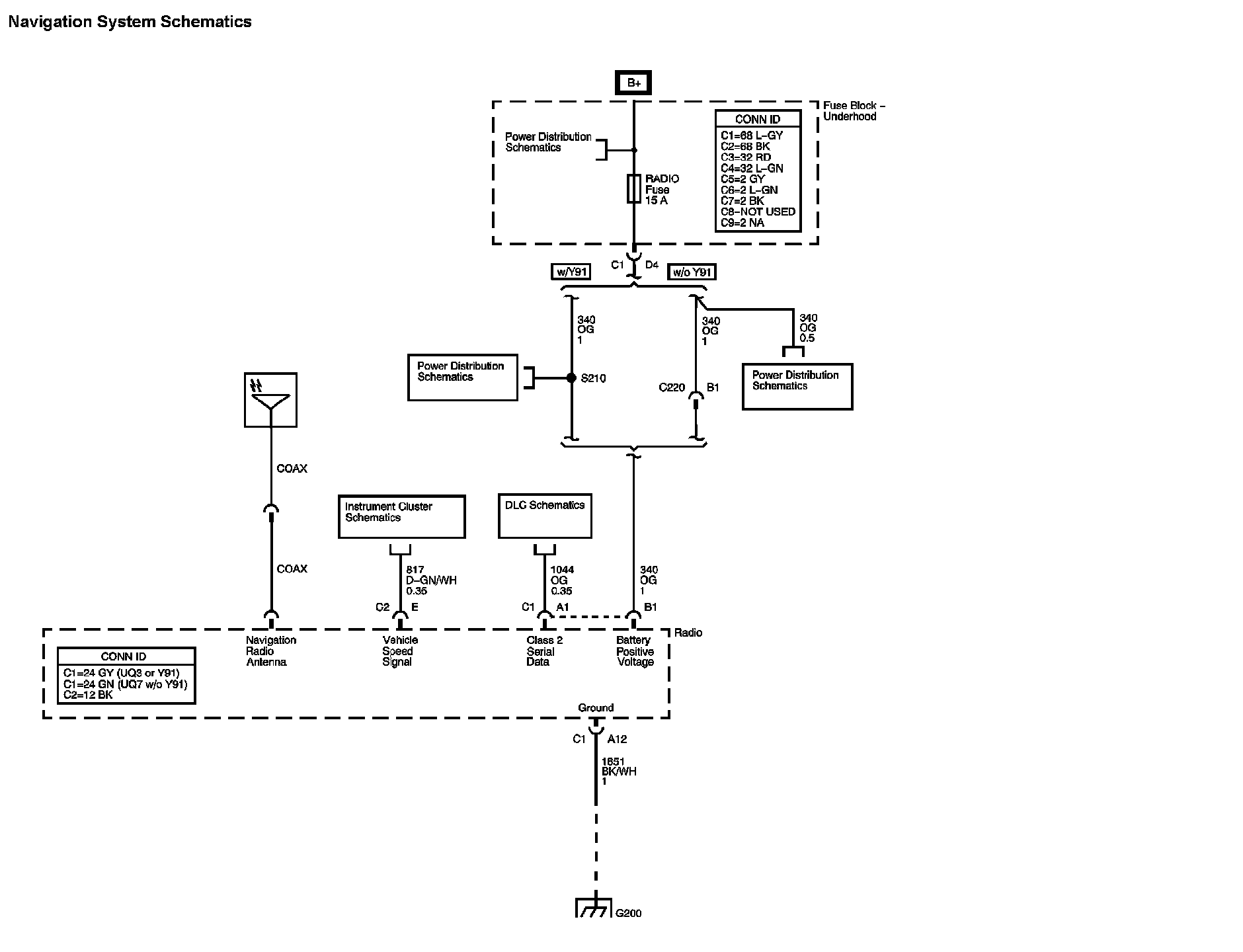 The locations for the Connectors, Grounds, Splices, and Grommets shown within these diagrams can be found via their numbers at Vehicle Locations.