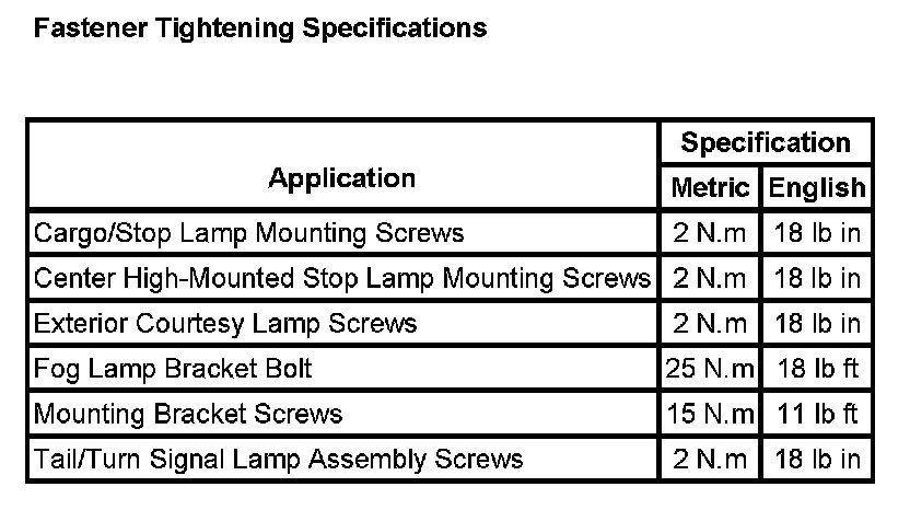 Lighting and Horns: Specifications