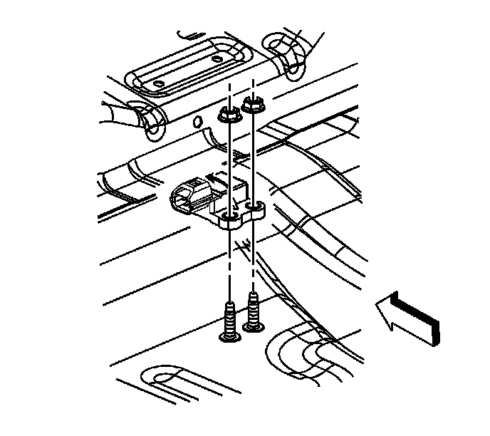 4. Remove the 2 nuts retaining the sensor to the floor panel.