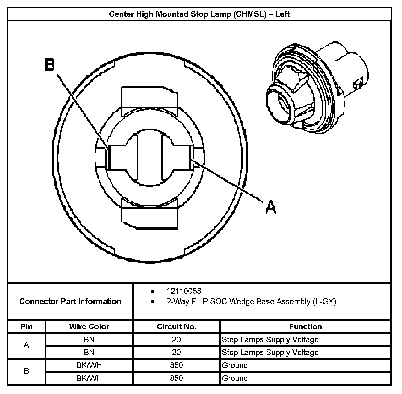 Center High Mounted Stop Lamp (CHMSL) - Left: