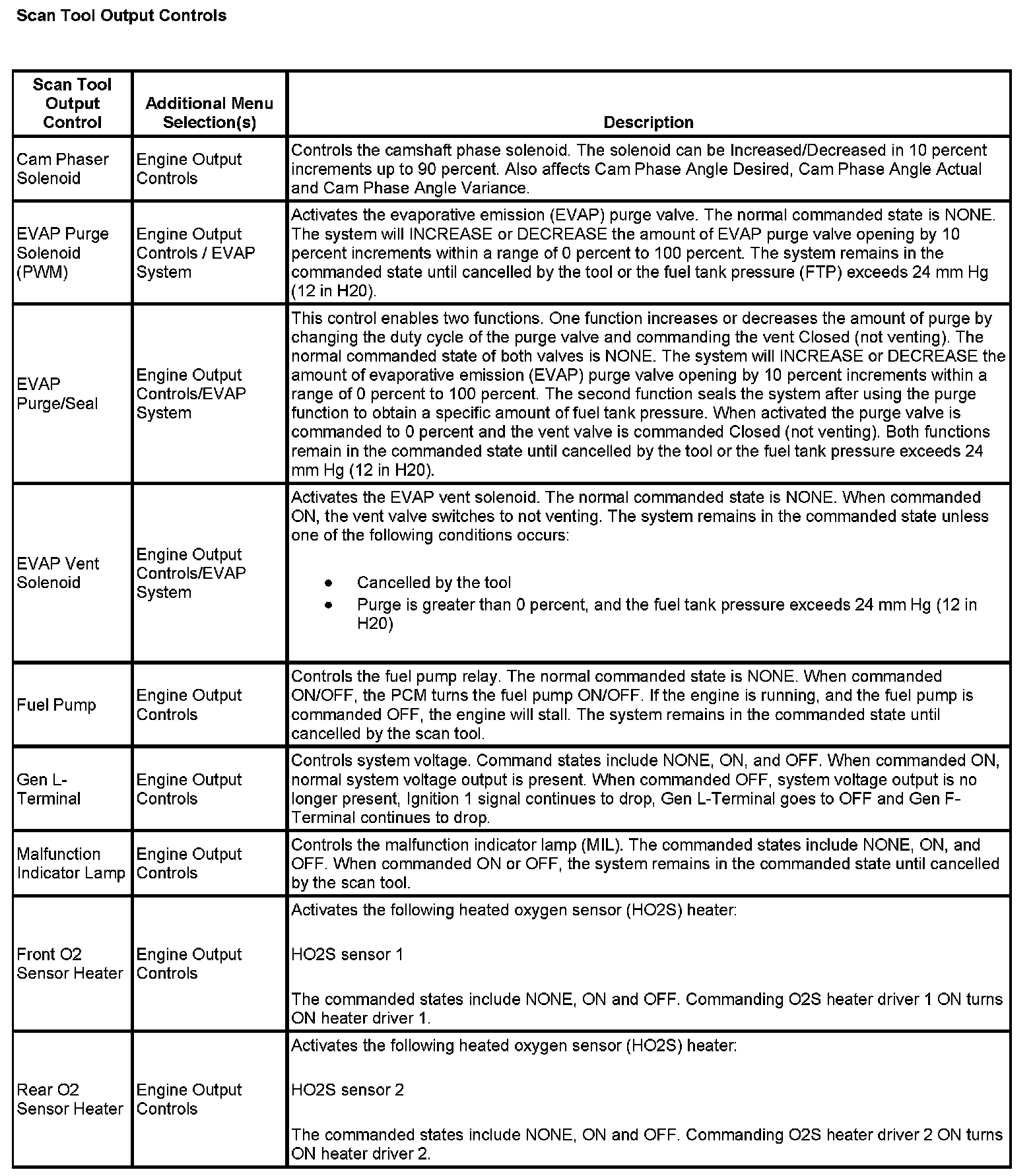 Scan Tool Output Controls: