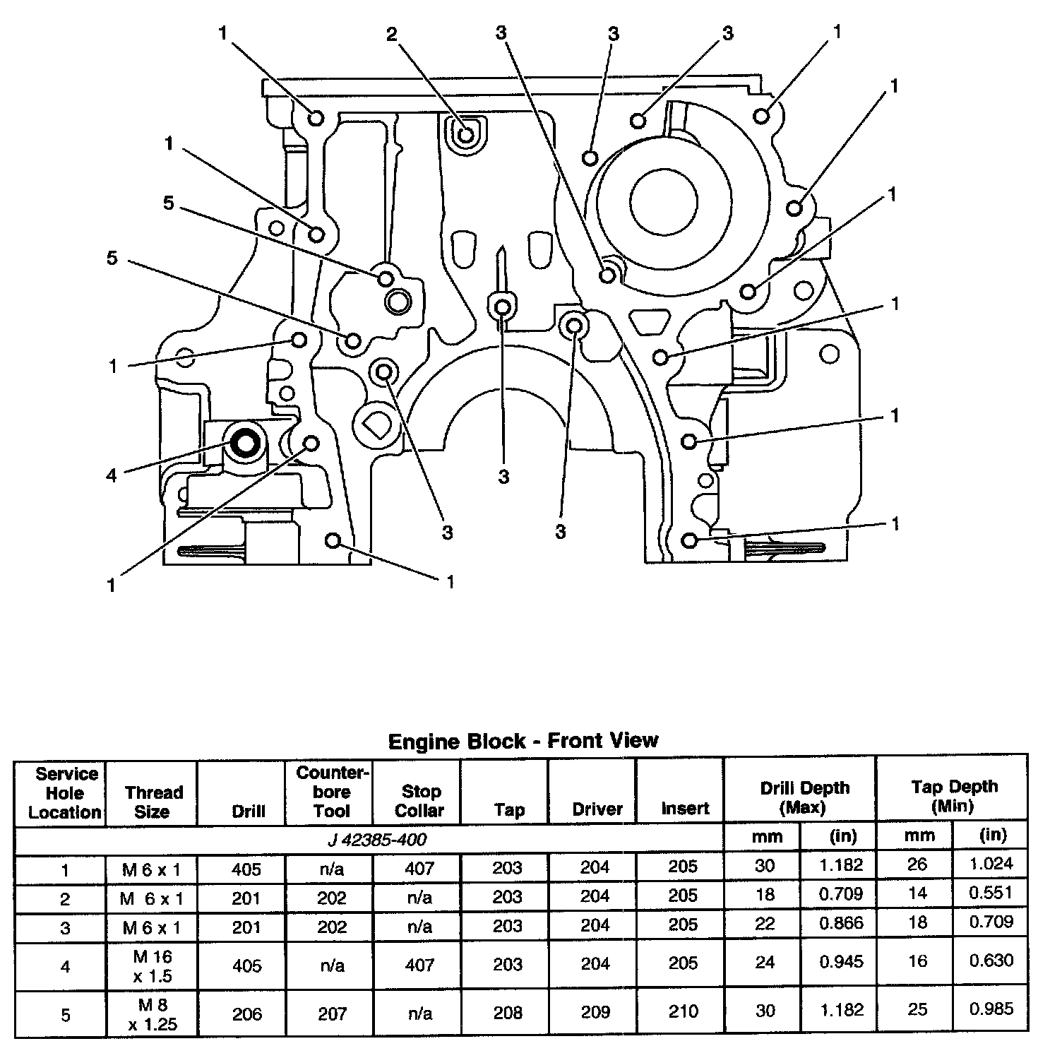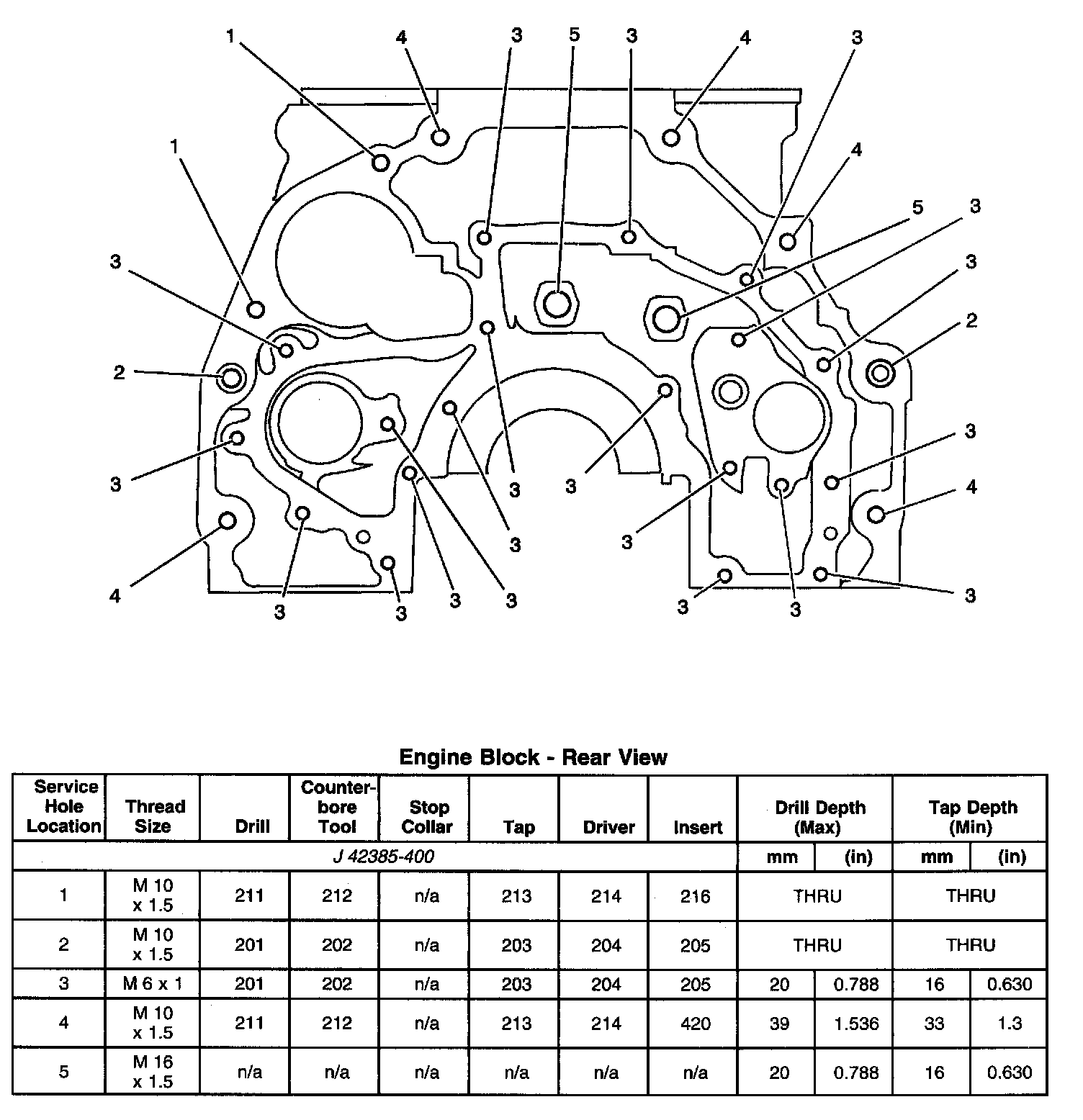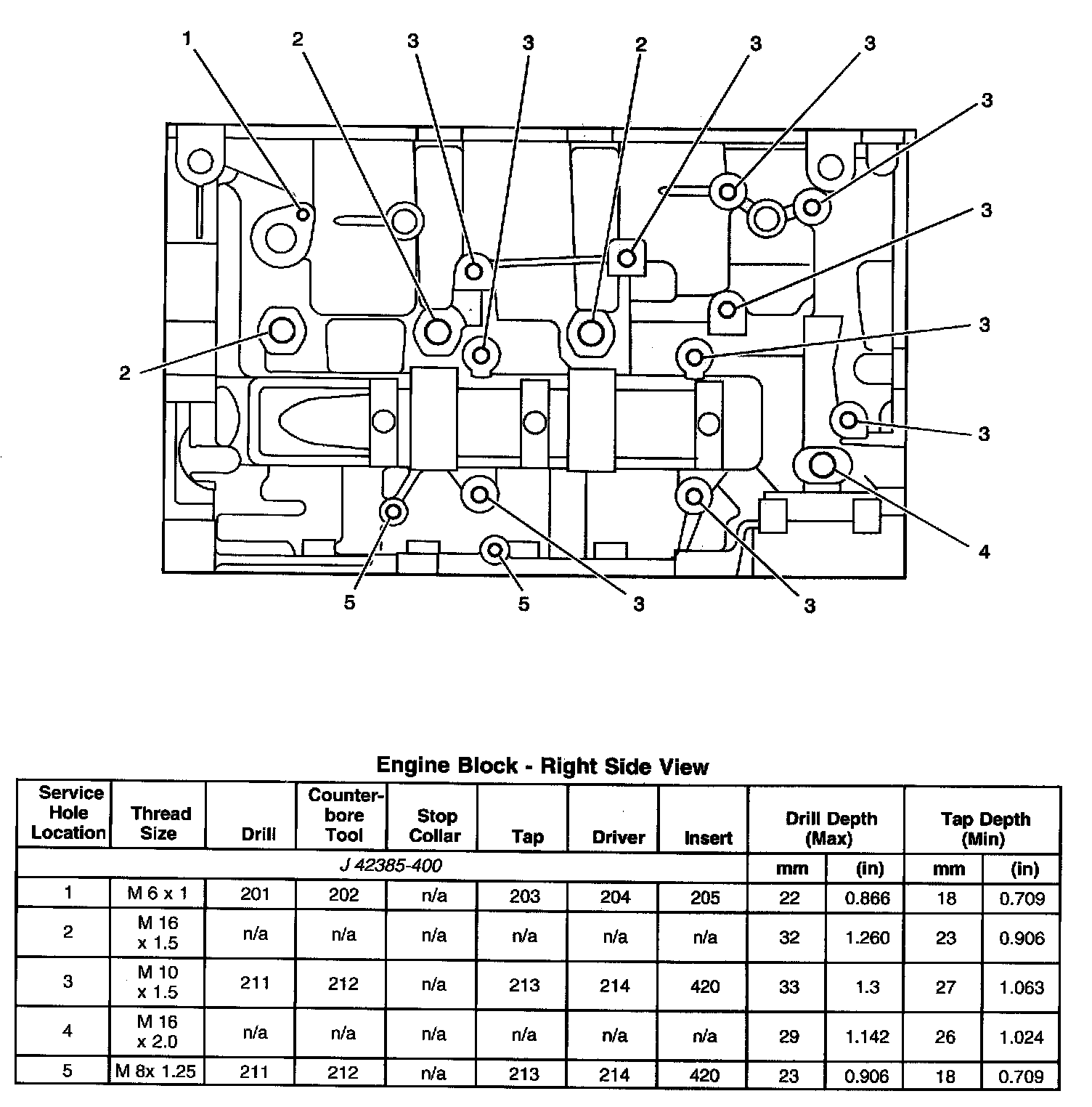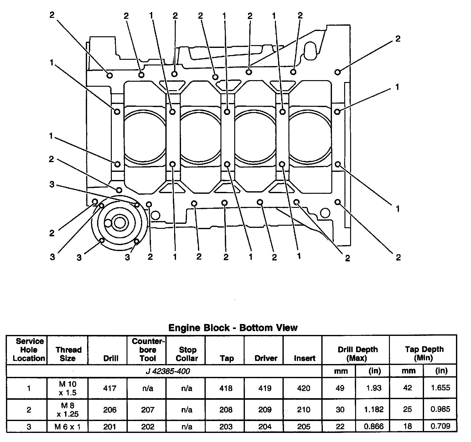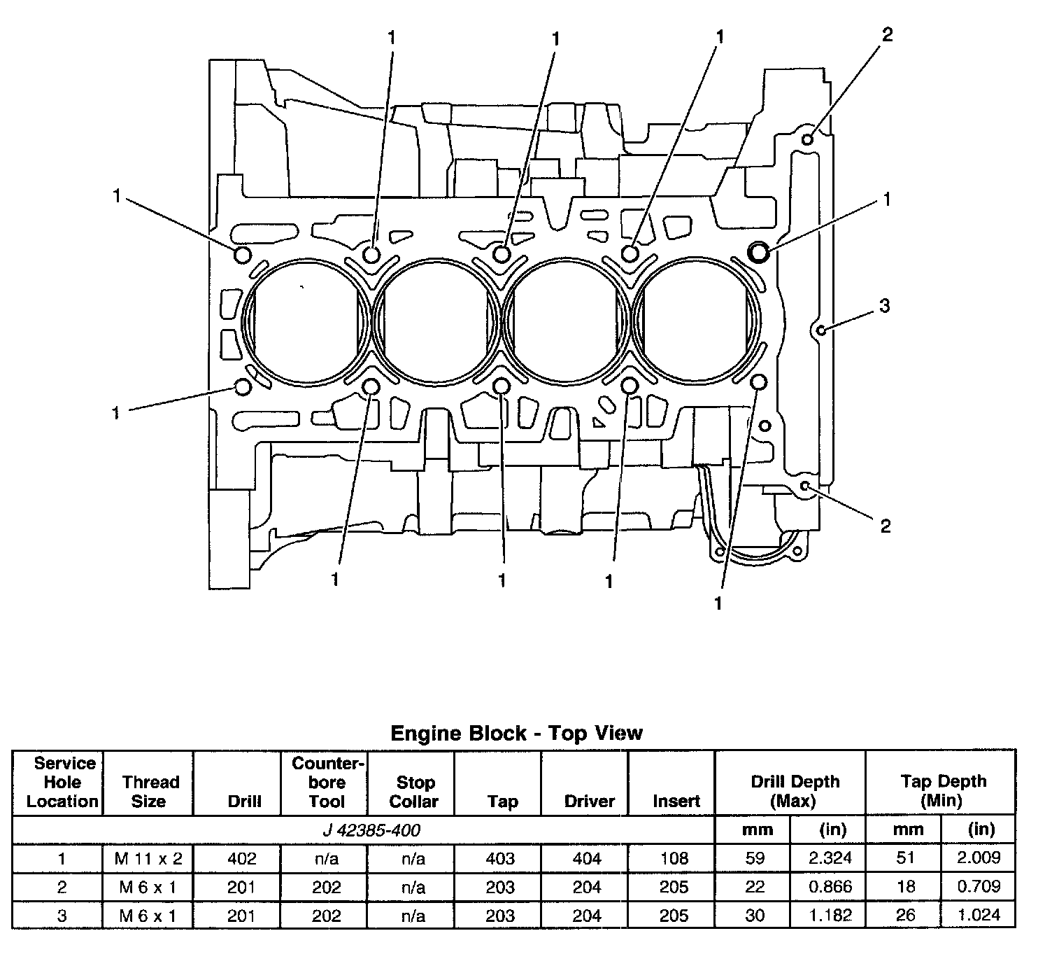 Thread Repair SpecificationsEngine Block - Top View